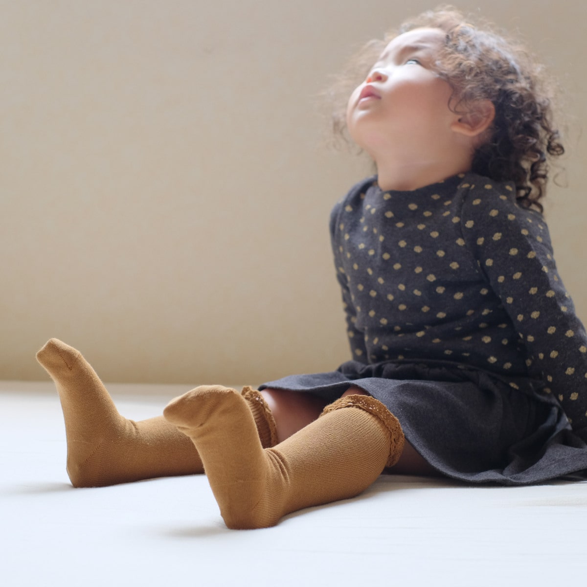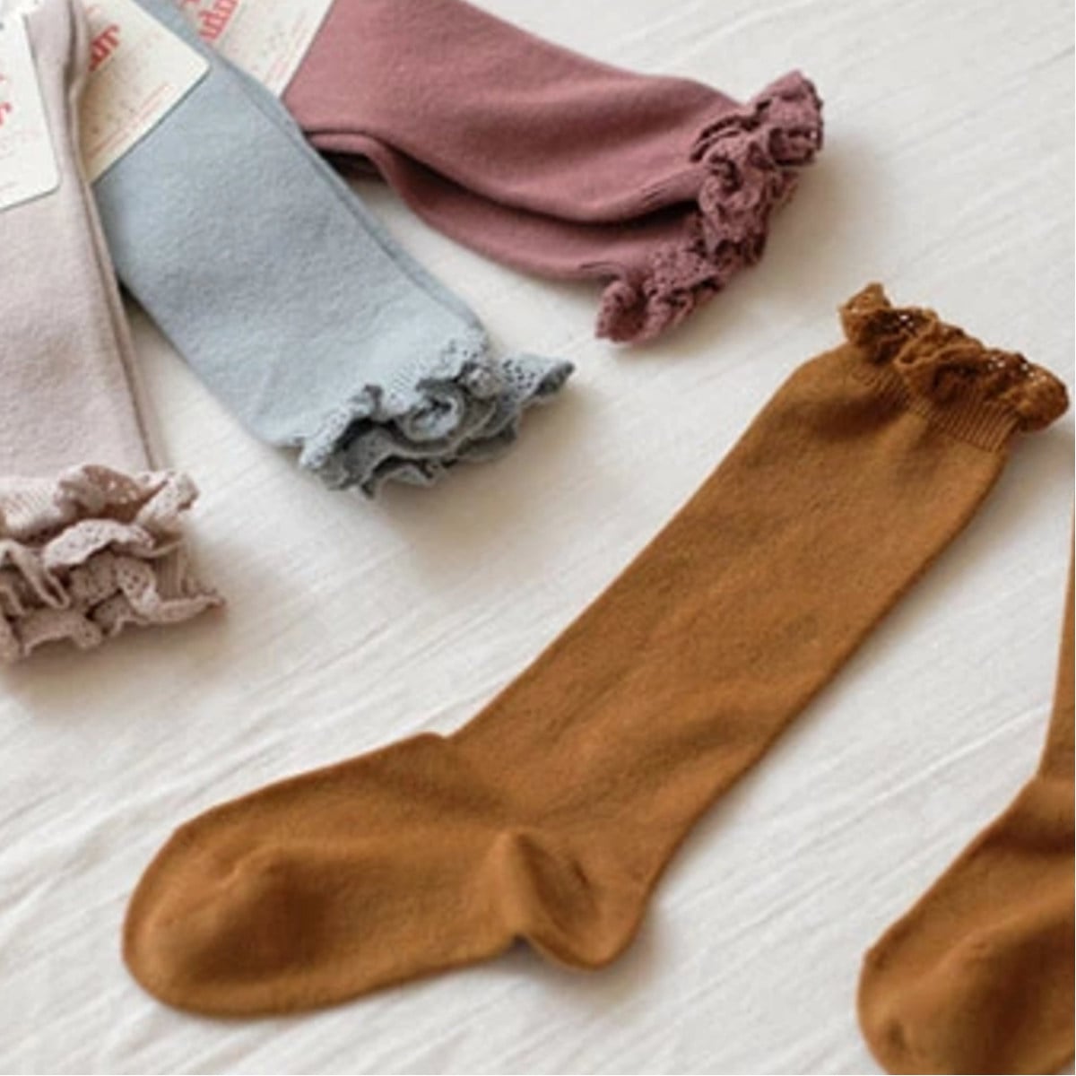 可愛らしいフリル付きのハイソックス