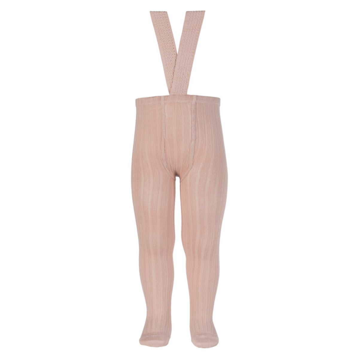 サスペンダーが付いたリブタイツです。サスペンダーは、ウエスト部分にしっかり固定されているので、あちこち沢山動きまわっても脱げる心配はありません。
