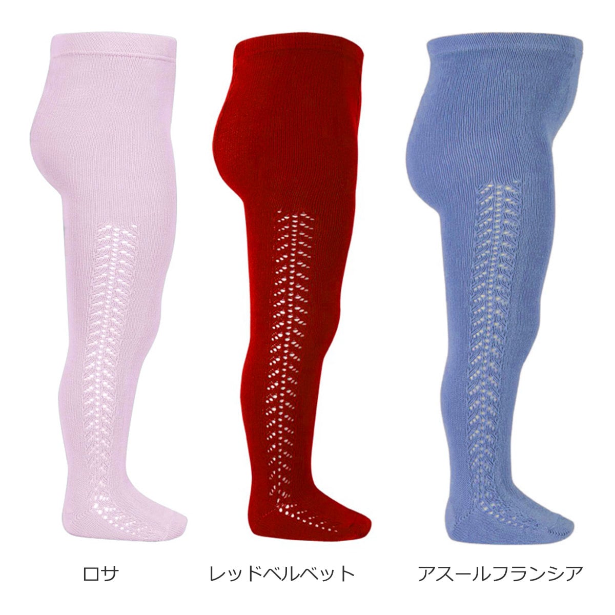 ■両サイドに透かし編みが施されたオープンワークタイツです。