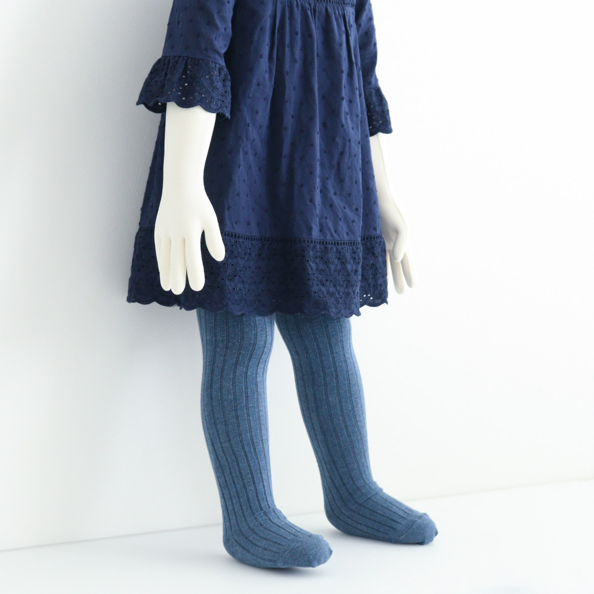 縦のラインが脚をスッキリ見せてくれるリブタイツです。どんなお洋服にも合わせやすいシンプルな形です。