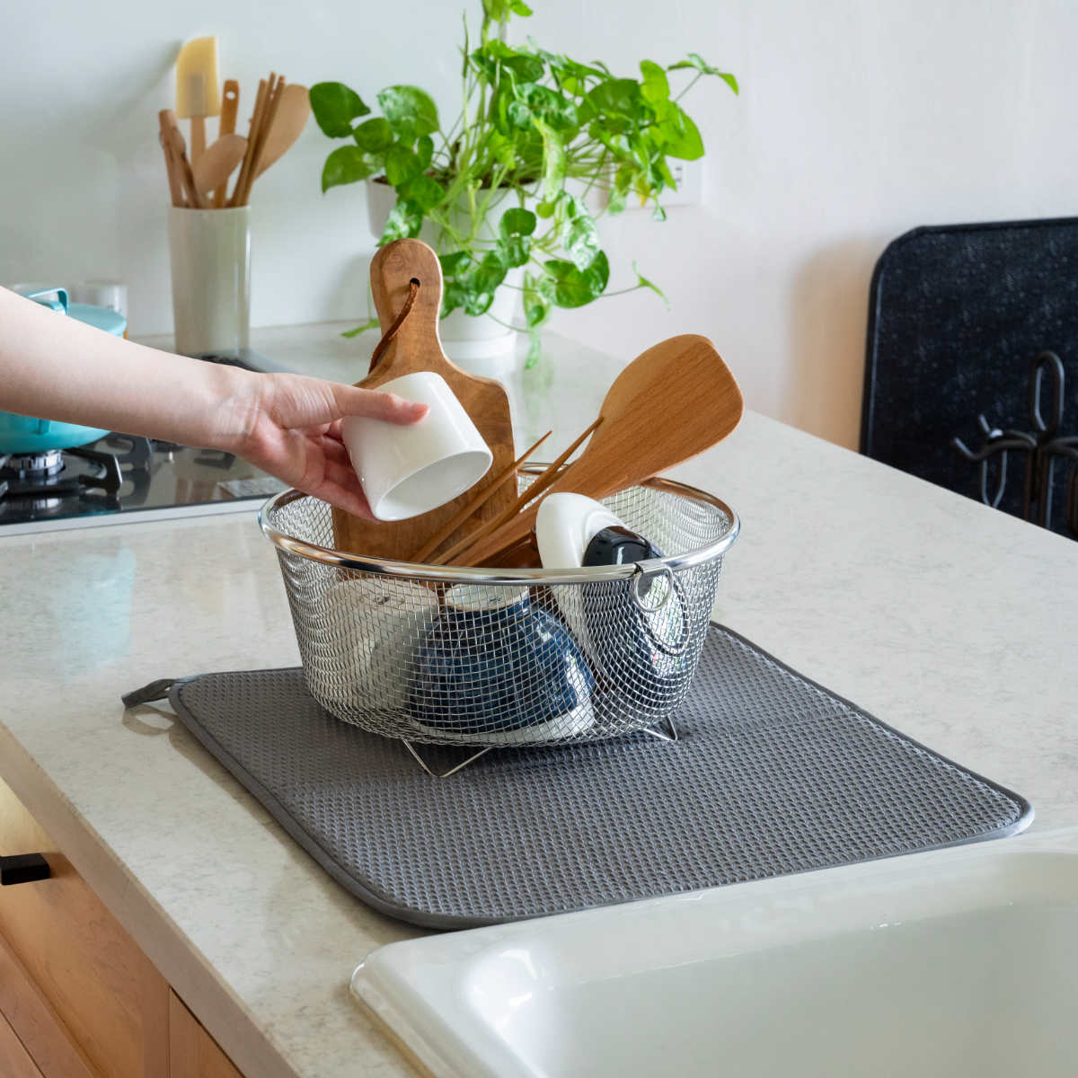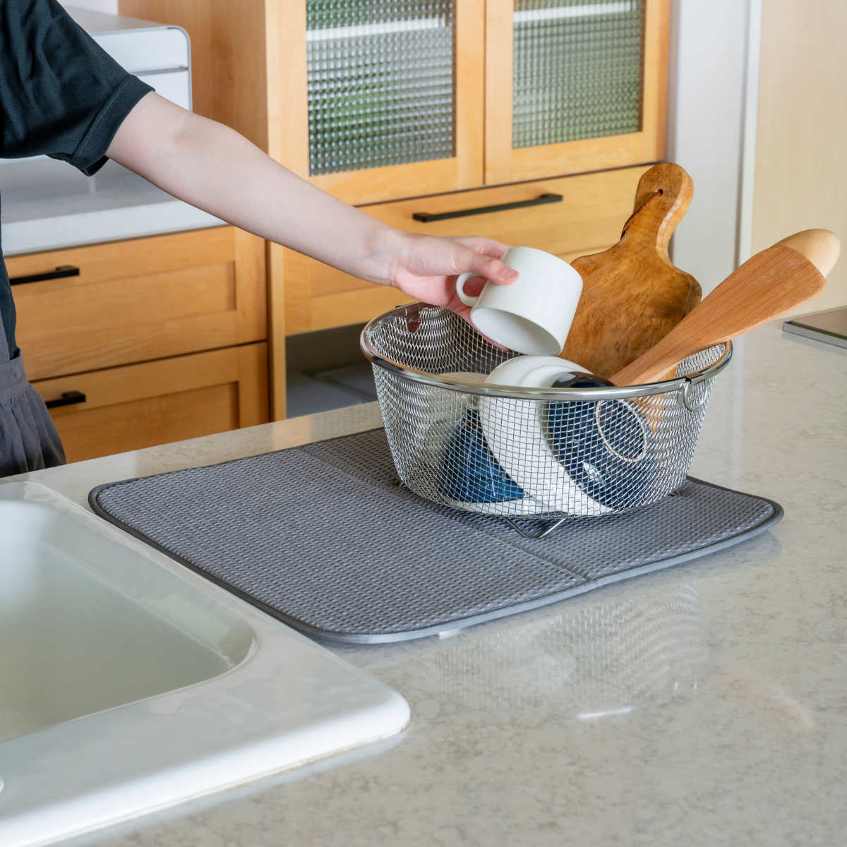 | 材質 | かご:18-8ステンレススチール 水切りマット:ポリエステル100% |