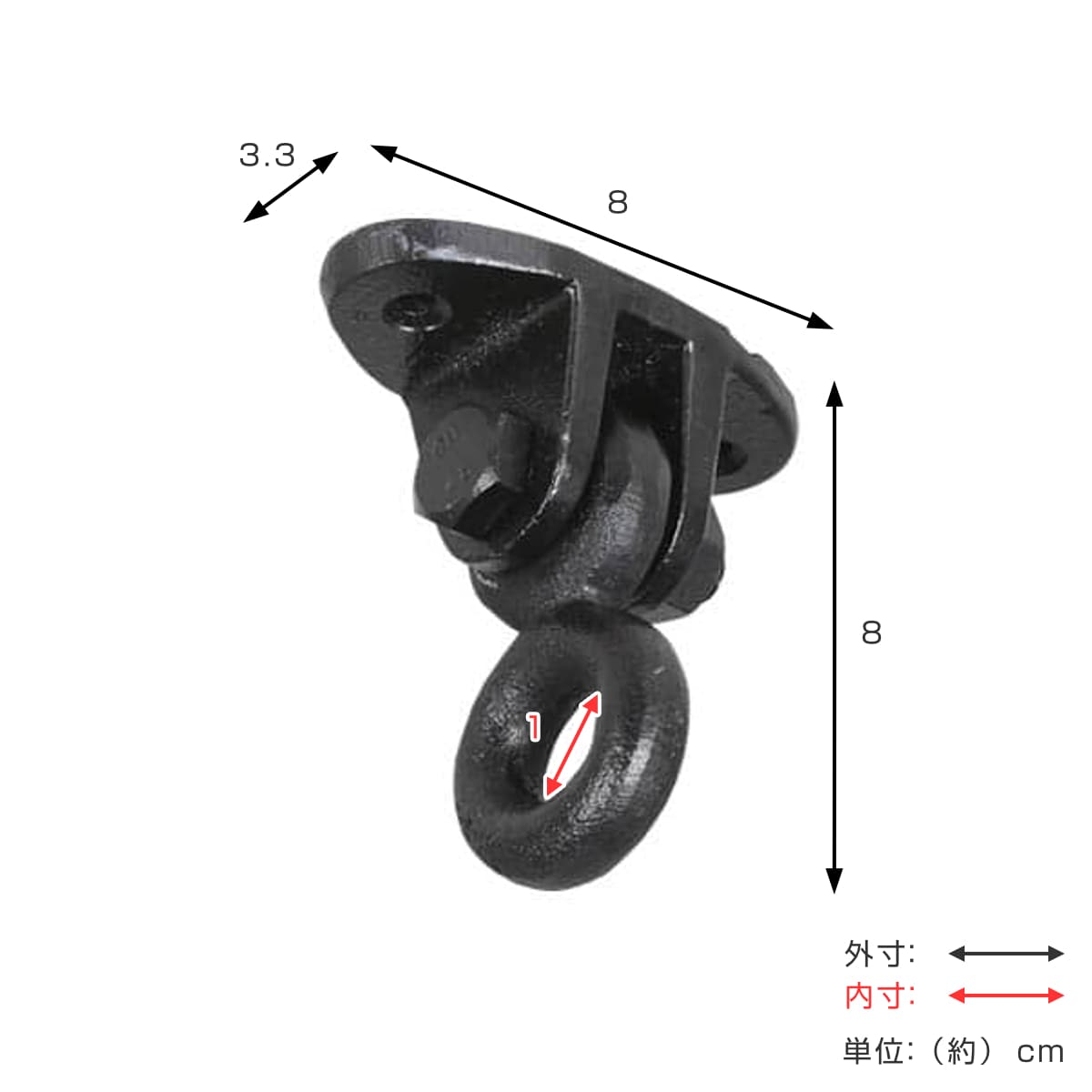 アンティークの風合いが味わい深いフックです。180度可動のリングなので、天井面、壁面双方での設置が可能です。天井にコードやロープ、チェーンを這わせる場面で、空間演出を忘れることなく活躍します。