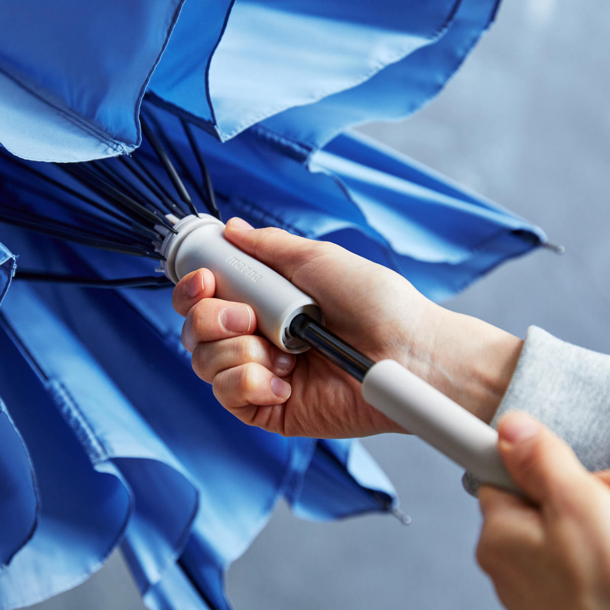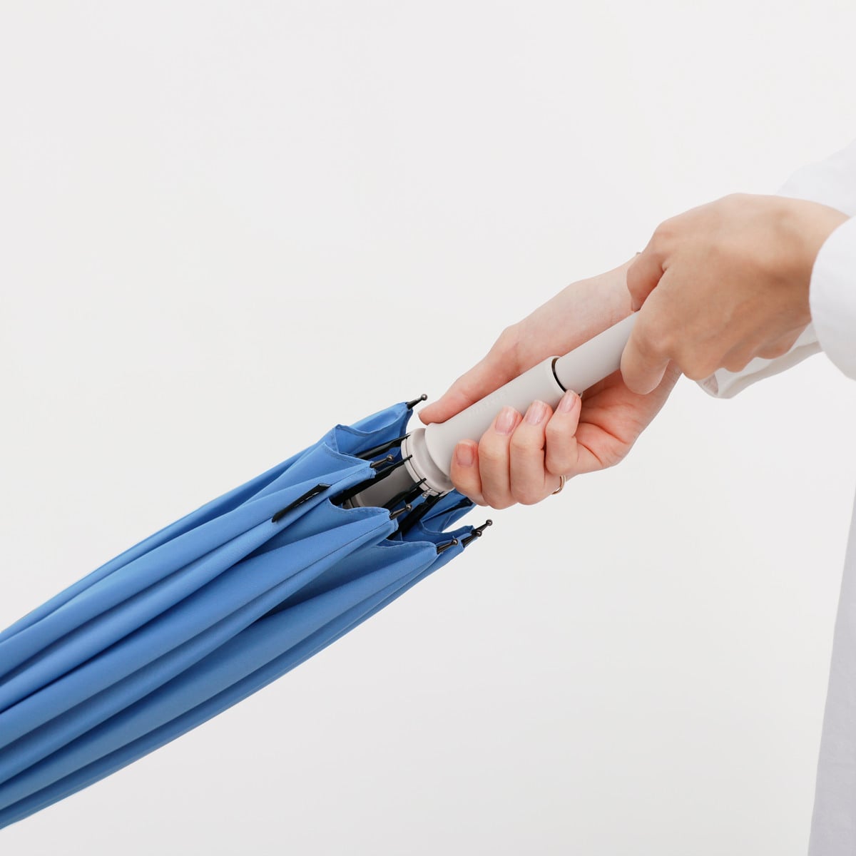スライダーを上げたり引くだけで傘を開閉できるボタンレスロック方式です。ボタンを押すアクションを減らし、スムーズに開閉できます。