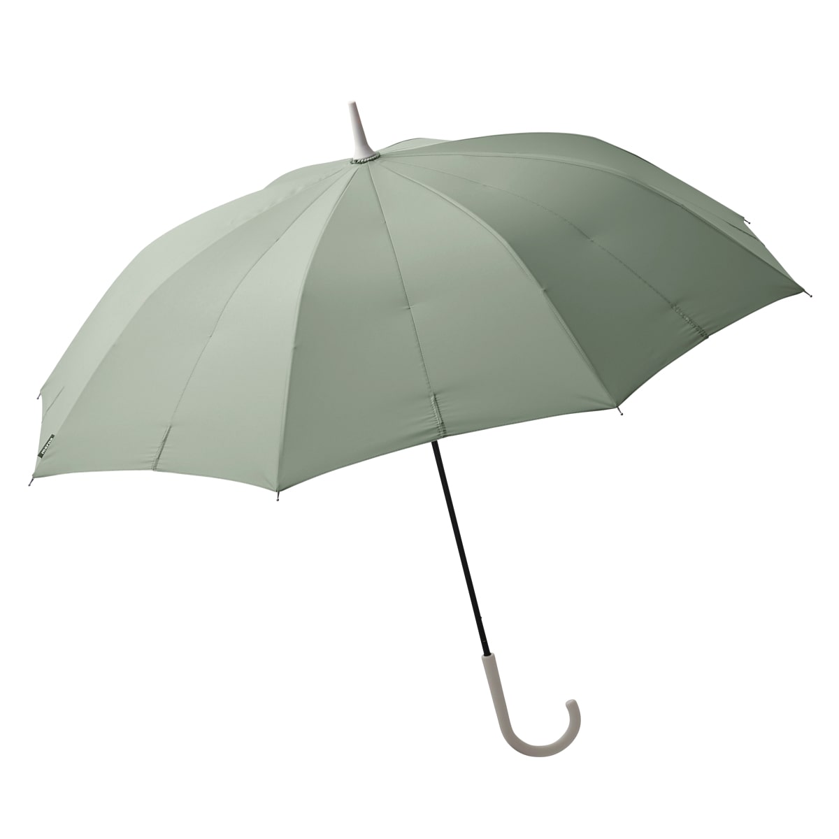 閉じる動きに連動して骨が回転し、軸を中心に生地がくるくると巻き込まれます。最後に手で生地をまとめたり、ベルトで留める必要がなく、手を濡らさずに素早く傘をたたむことができます。