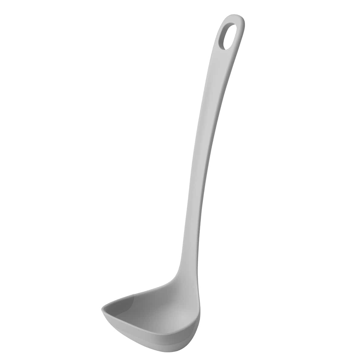 お玉の縁のシリコーンがしなってお鍋のカーブにフィットします。鍋肌や食材を傷つけにくく、底面・側面に沿わせて残さずキレイにすくい取れます。