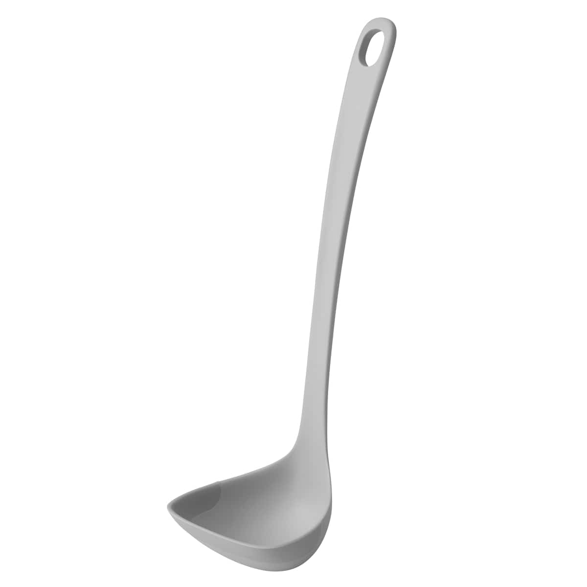 お玉の縁のシリコーンがしなってお鍋のカーブにフィットします。鍋肌や食材を傷つけにくく、底面・側面に沿わせて残さずキレイにすくい取れます。