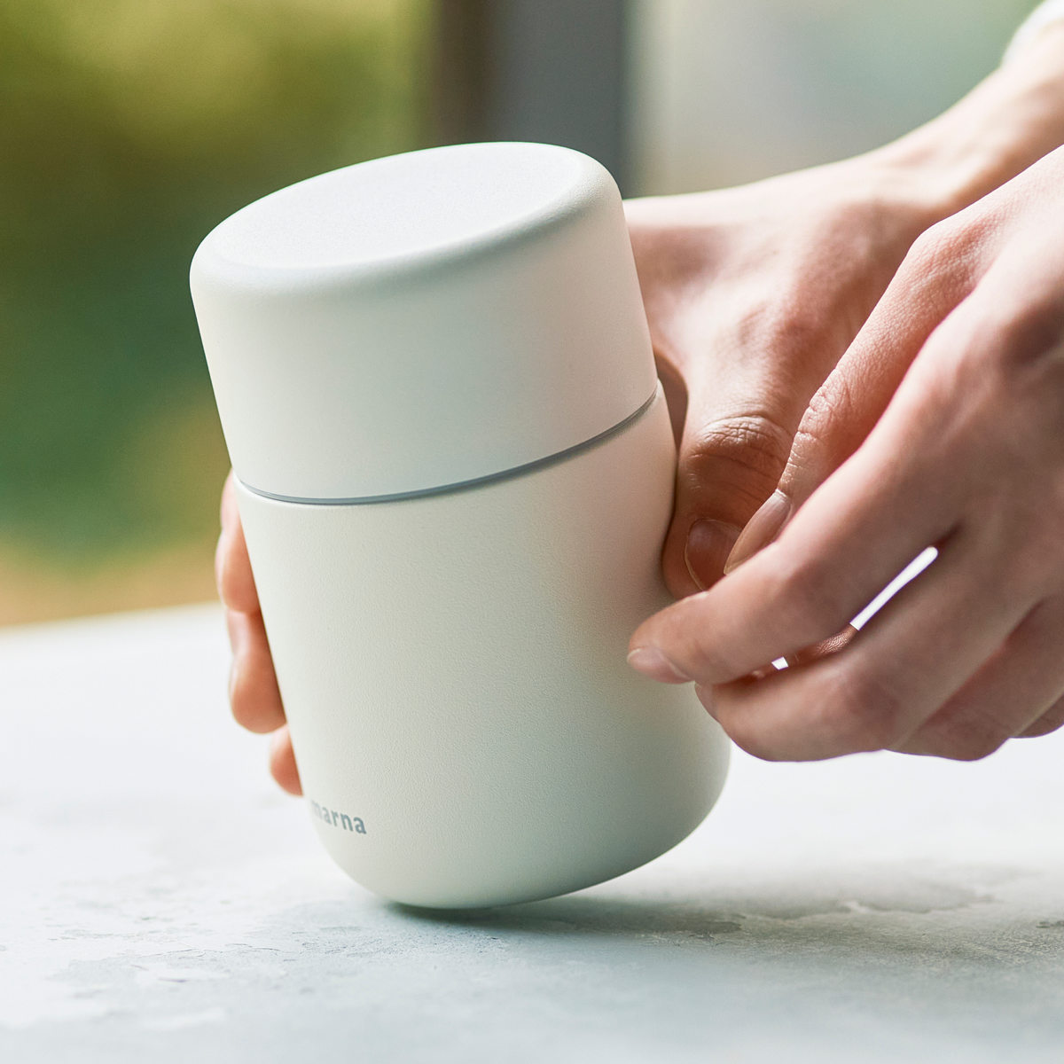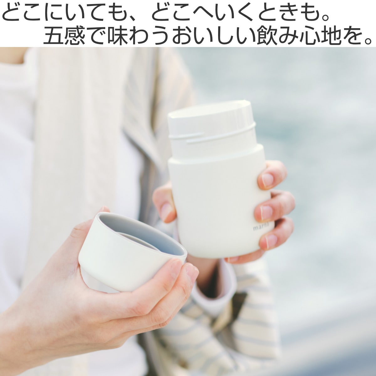 先端にいくにつれ薄くなる飲み口と艶やかな表面により、口当たりの良さを実現しました。パウダーコーティングを施したボディはまるで陶器のような質感です。