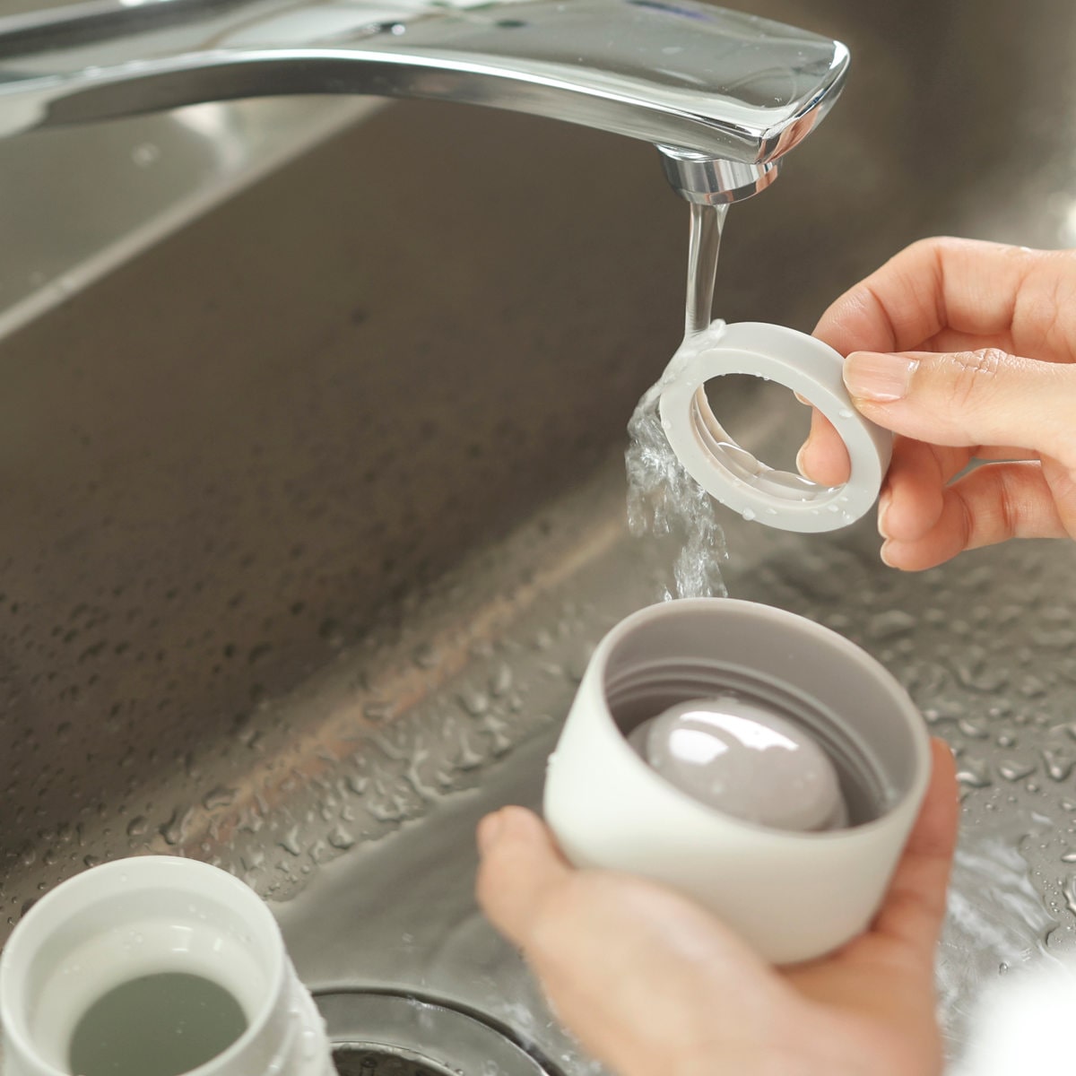 傷が付きにくく水切れがいいセラミック加工が施されています。3パーツのみのシンプルな構造で、汚れが溜まりにくく毎日のお手入れが楽にできます。