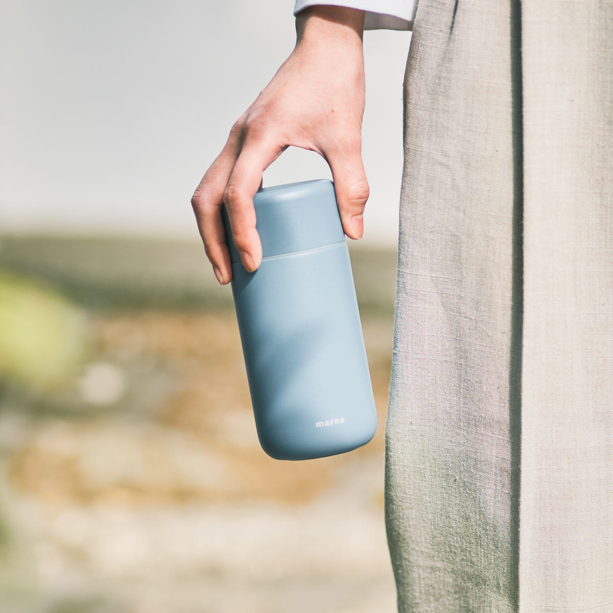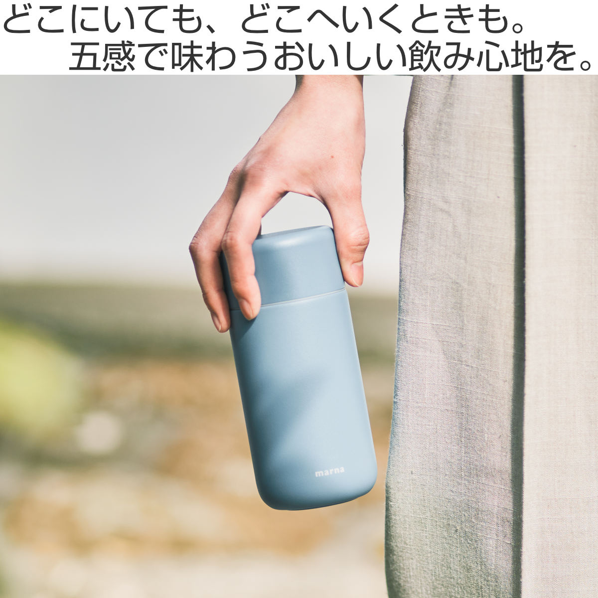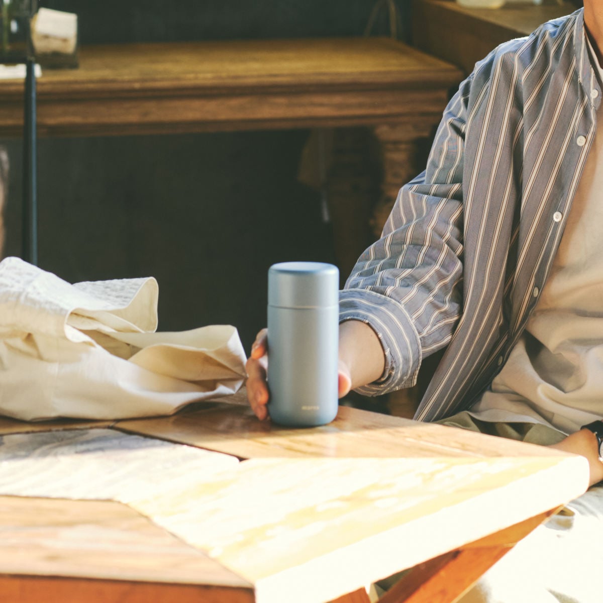 先端にいくにつれ薄くなる飲み口と艶やかな表面により、口当たりの良さを実現しました。パウダーコーティングを施したボディはまるで陶器のような質感です。
