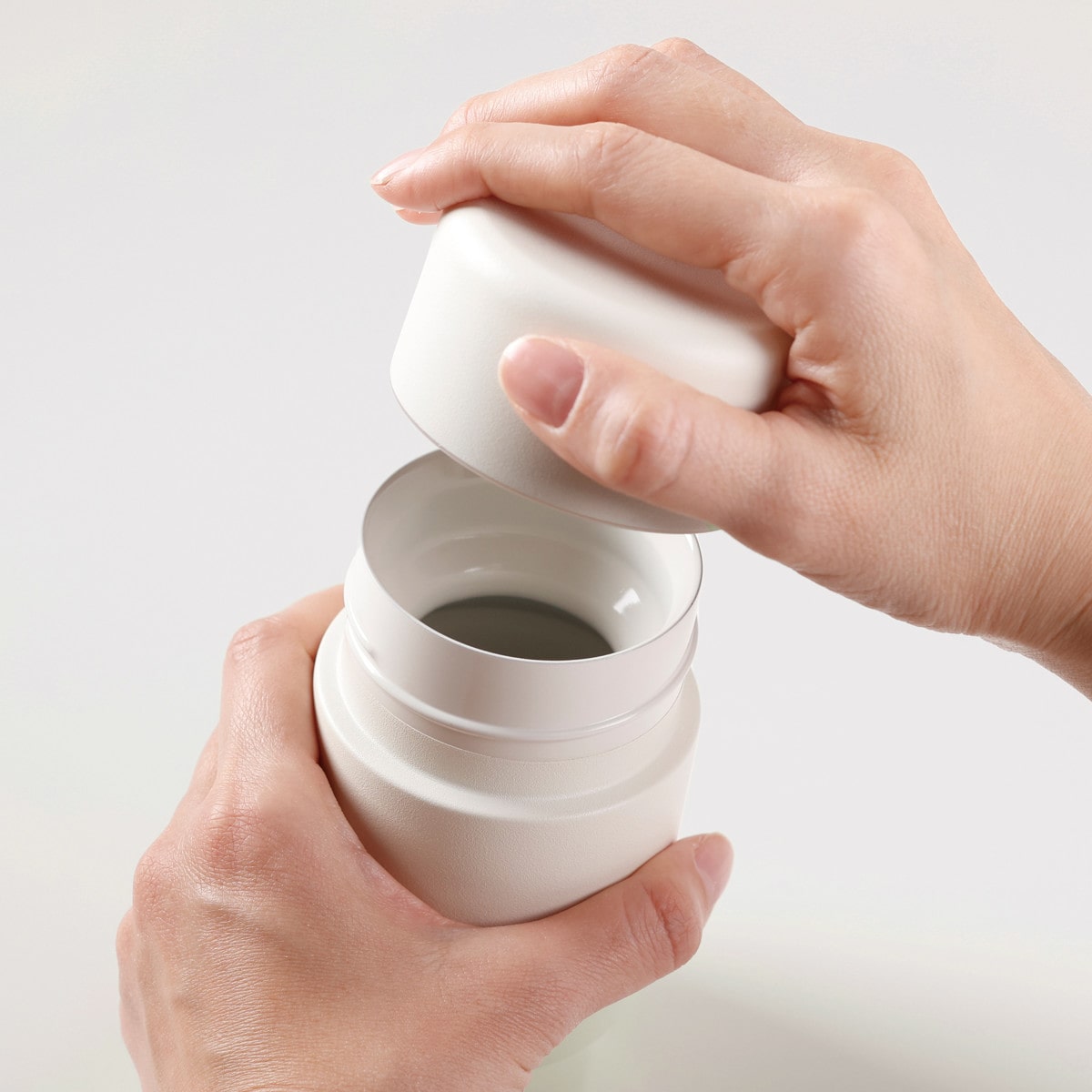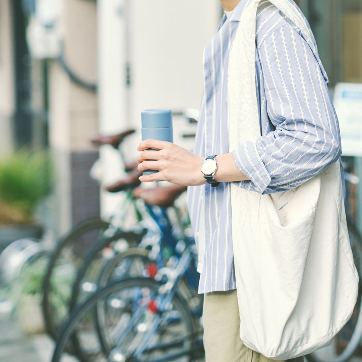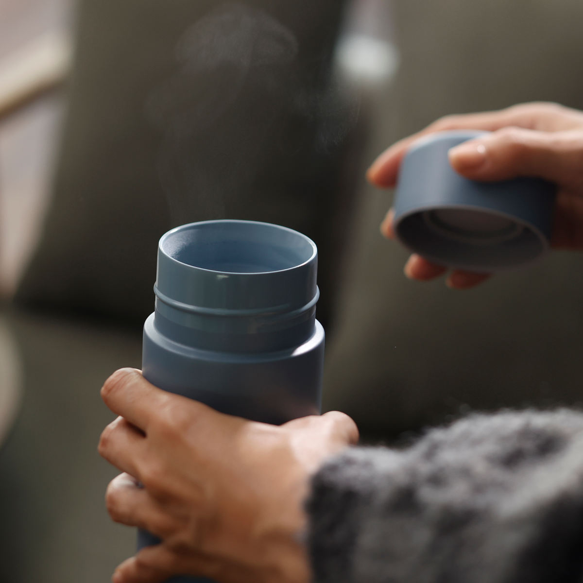先端にいくにつれ薄くなる飲み口と艶やかな表面により、口当たりの良さを実現しました。パウダーコーティングを施したボディはまるで陶器のような質感です。