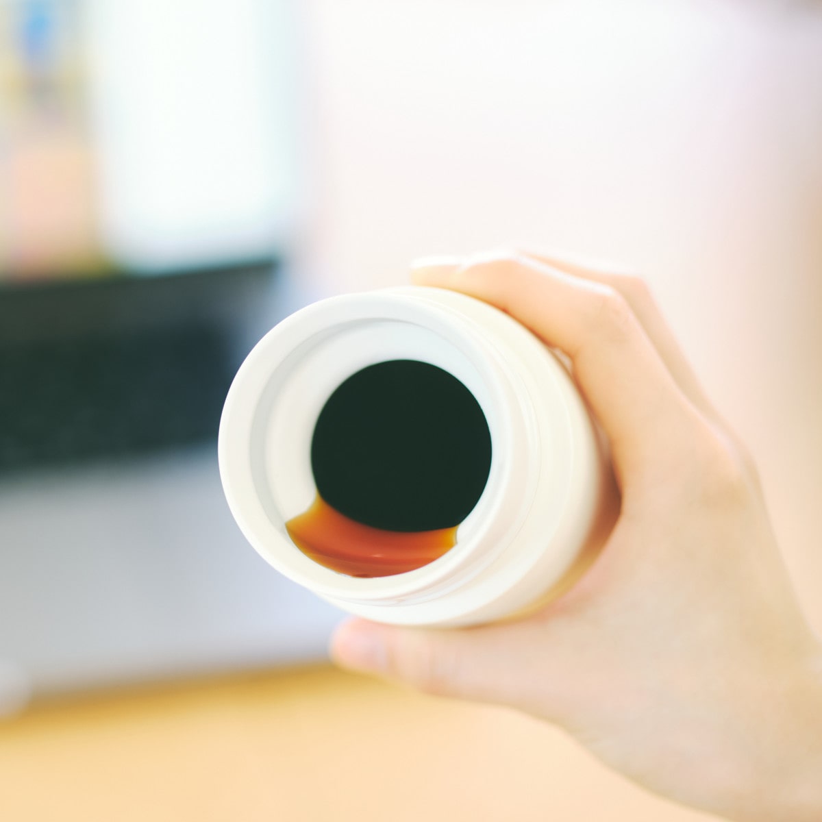 | 簡単に開閉できる フタは、ひとひねりで開閉できます。 | 液だれを軽減 フタ裏は、液だれを軽減する形状です。 |