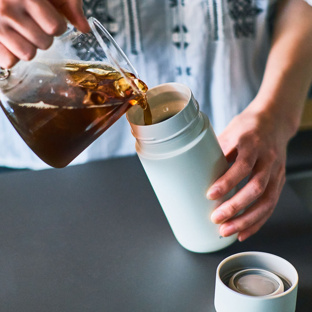 真空二層構造で保温・保冷性を高め、おいしい温度を保ちます。冷たいお茶から温かいコーヒーまで1年を通して使えます。