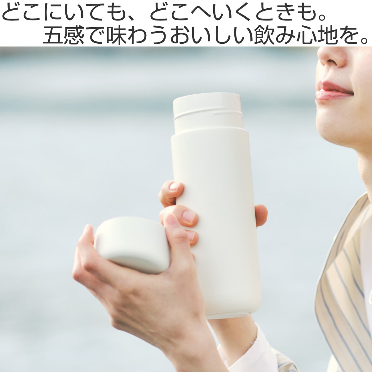 内側から飲み口まで続くセラミック塗装加工により、ステンレス特有の金属臭・金属味を軽減して飲みもの本来のおいしさを感じられます。