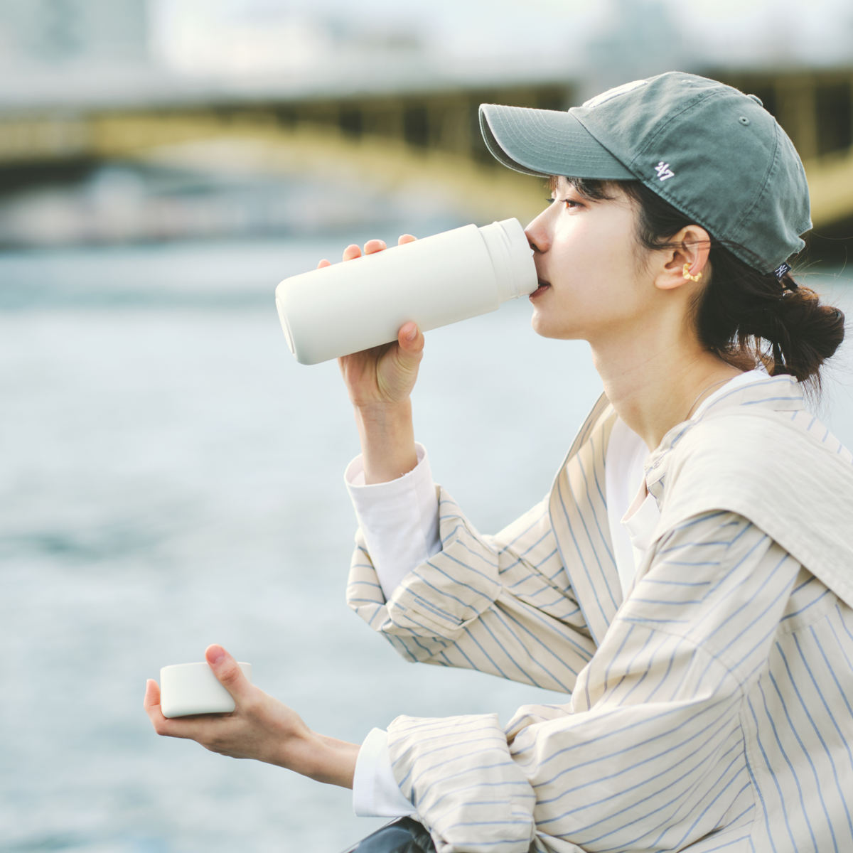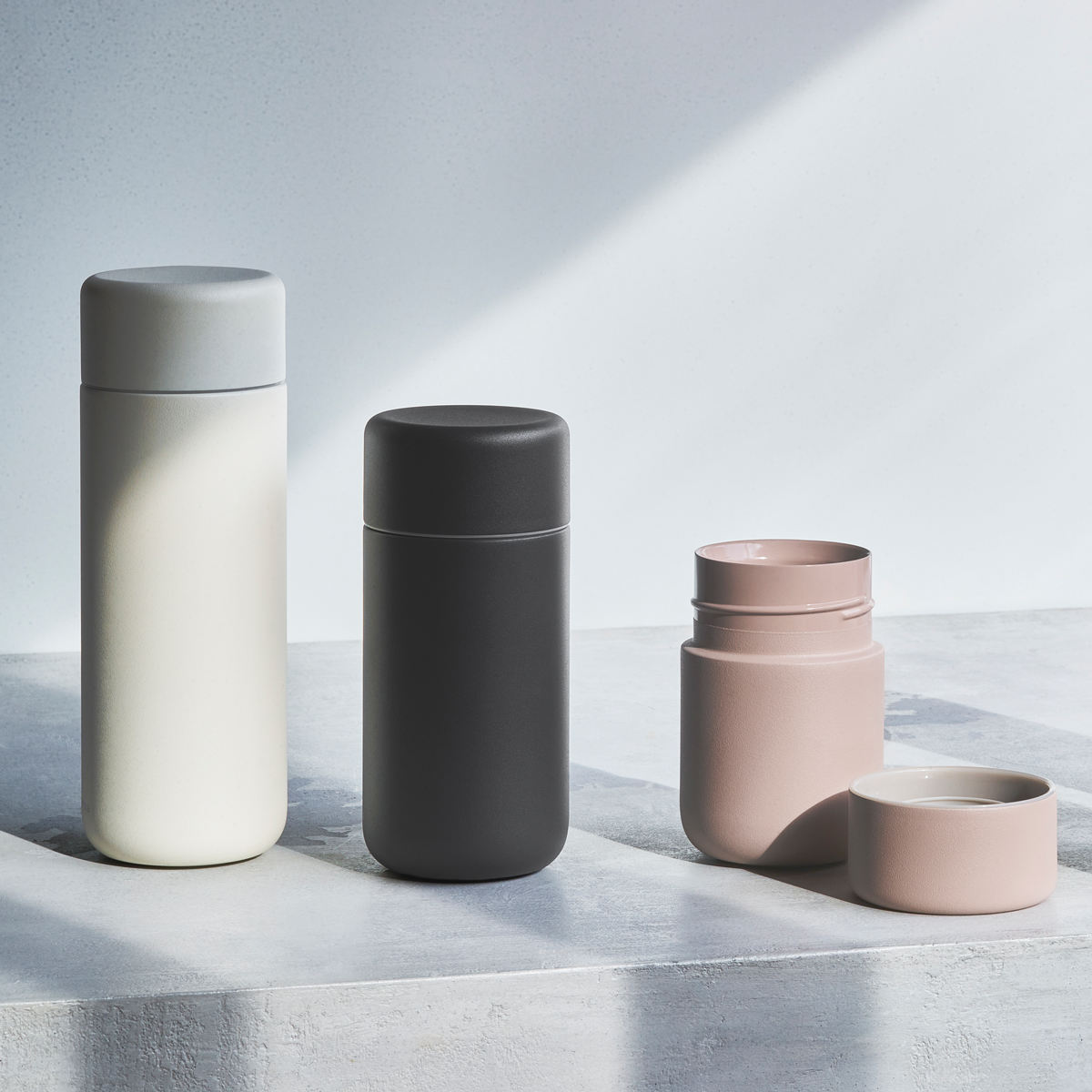 先端にいくにつれ薄くなる飲み口と艶やかな表面により、口当たりの良さを実現しました。パウダーコーティングを施したボディはまるで陶器のような質感です。