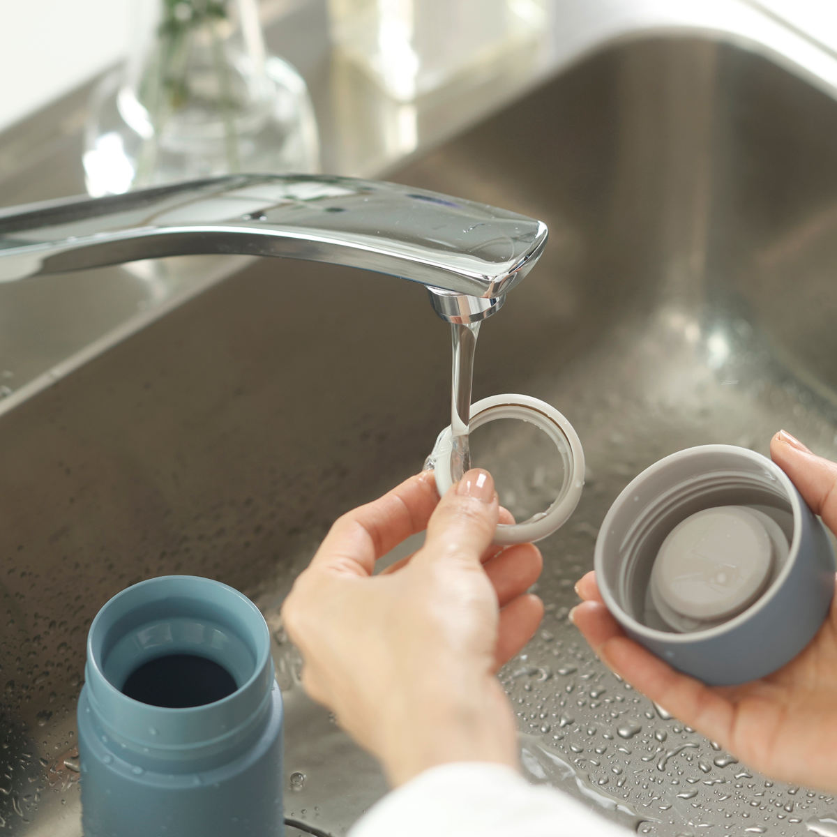 傷が付きにくく水切れがいいセラミック加工が施されています。3パーツのみのシンプルな構造で、汚れが溜まりにくく毎日のお手入れが楽にできます。