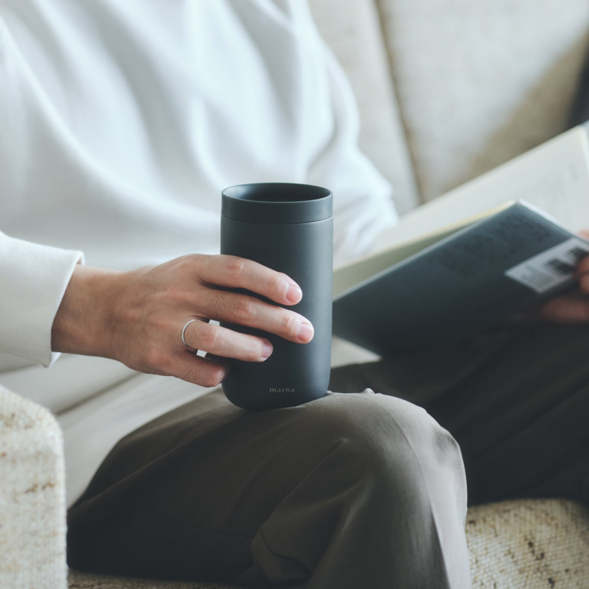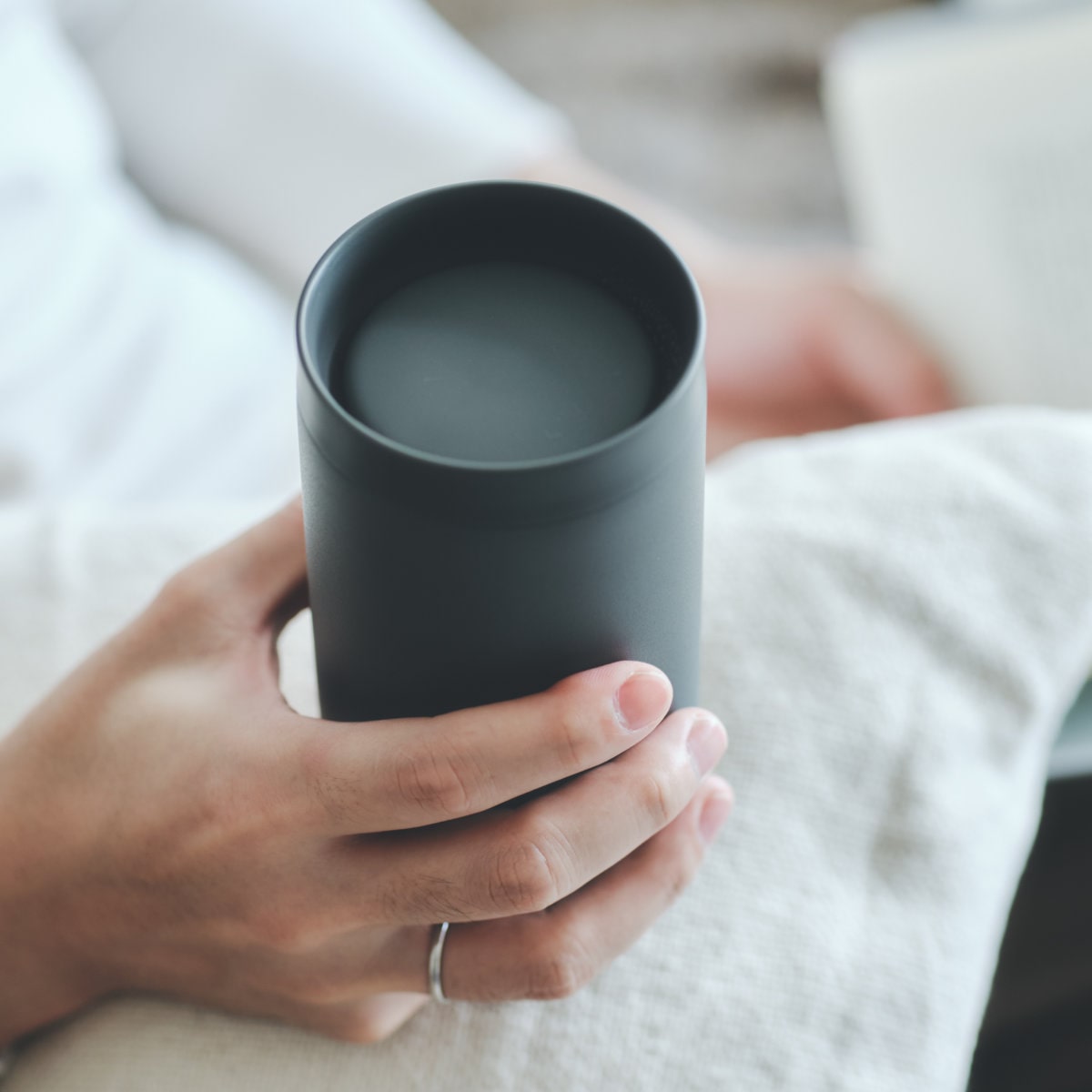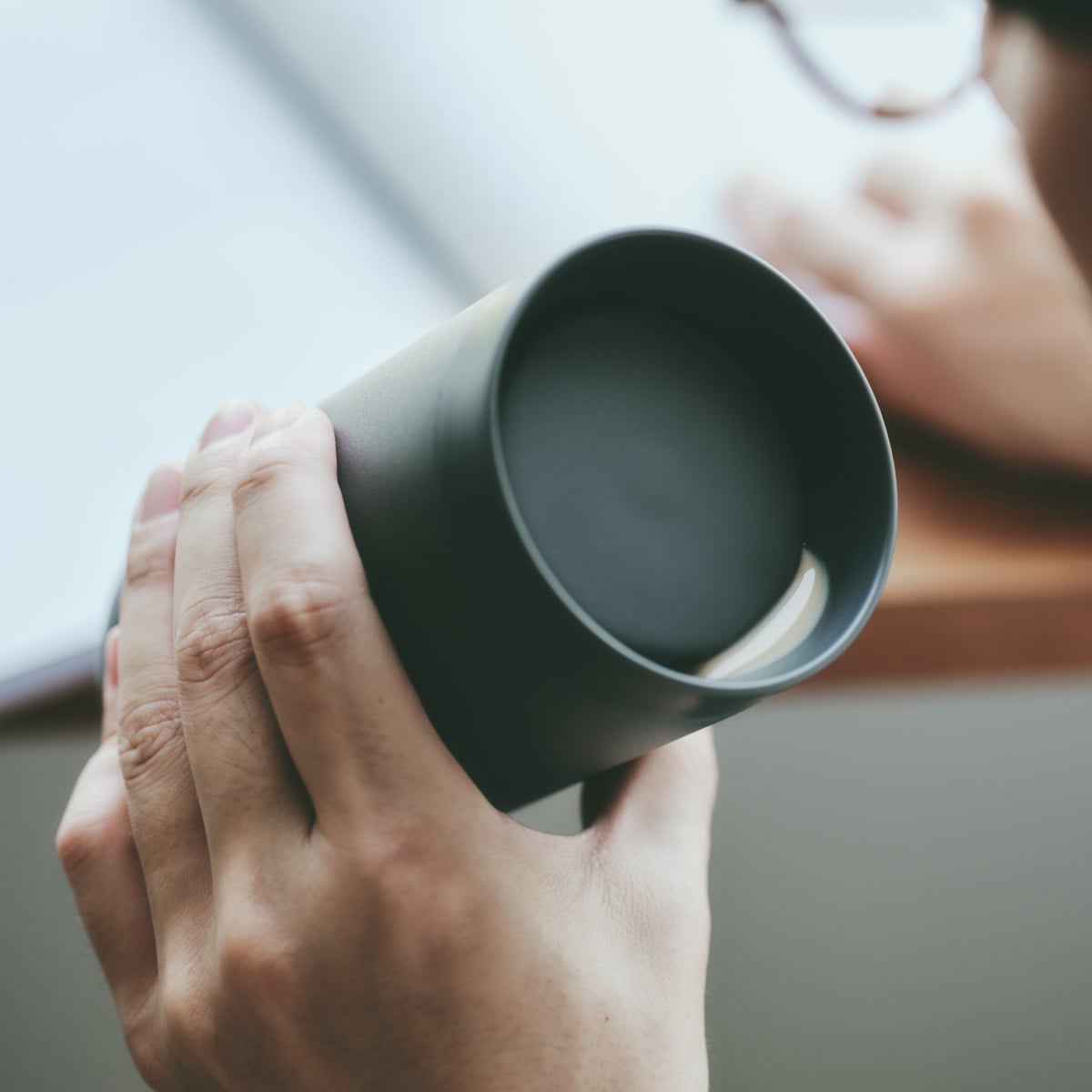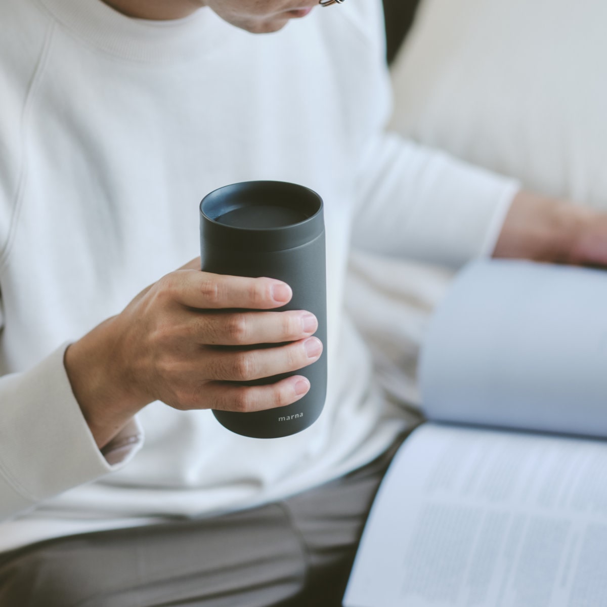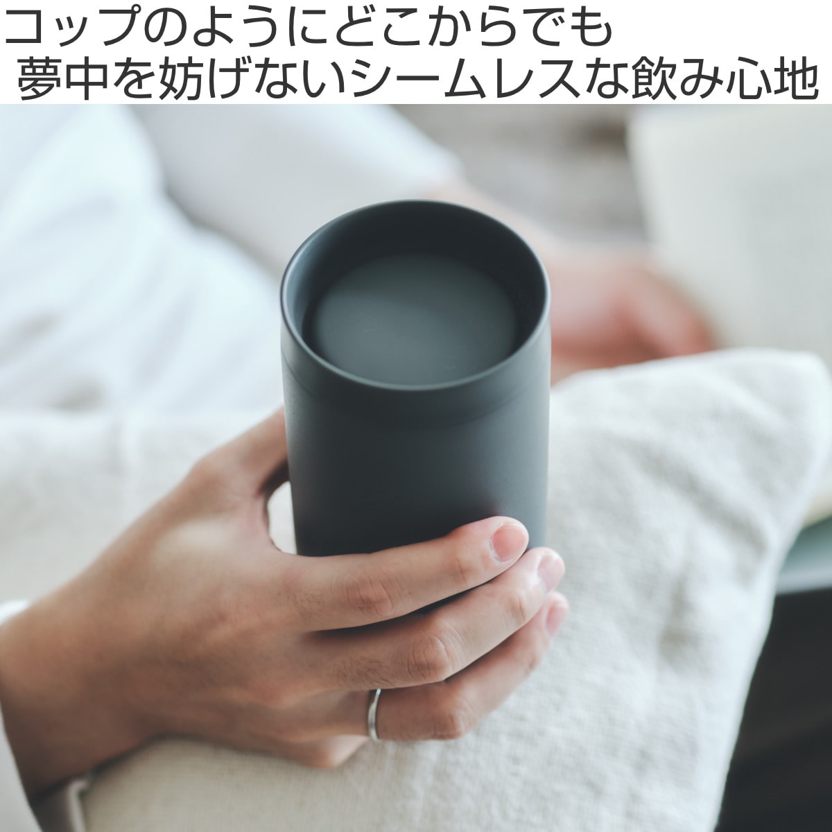 フタをしたまま、360度どこからでも飲めるタンブラーです。飲むたびにフタの開閉が不要だから仕事や勉強、読書をしながらでも飲みものをおいしく愉しめます。