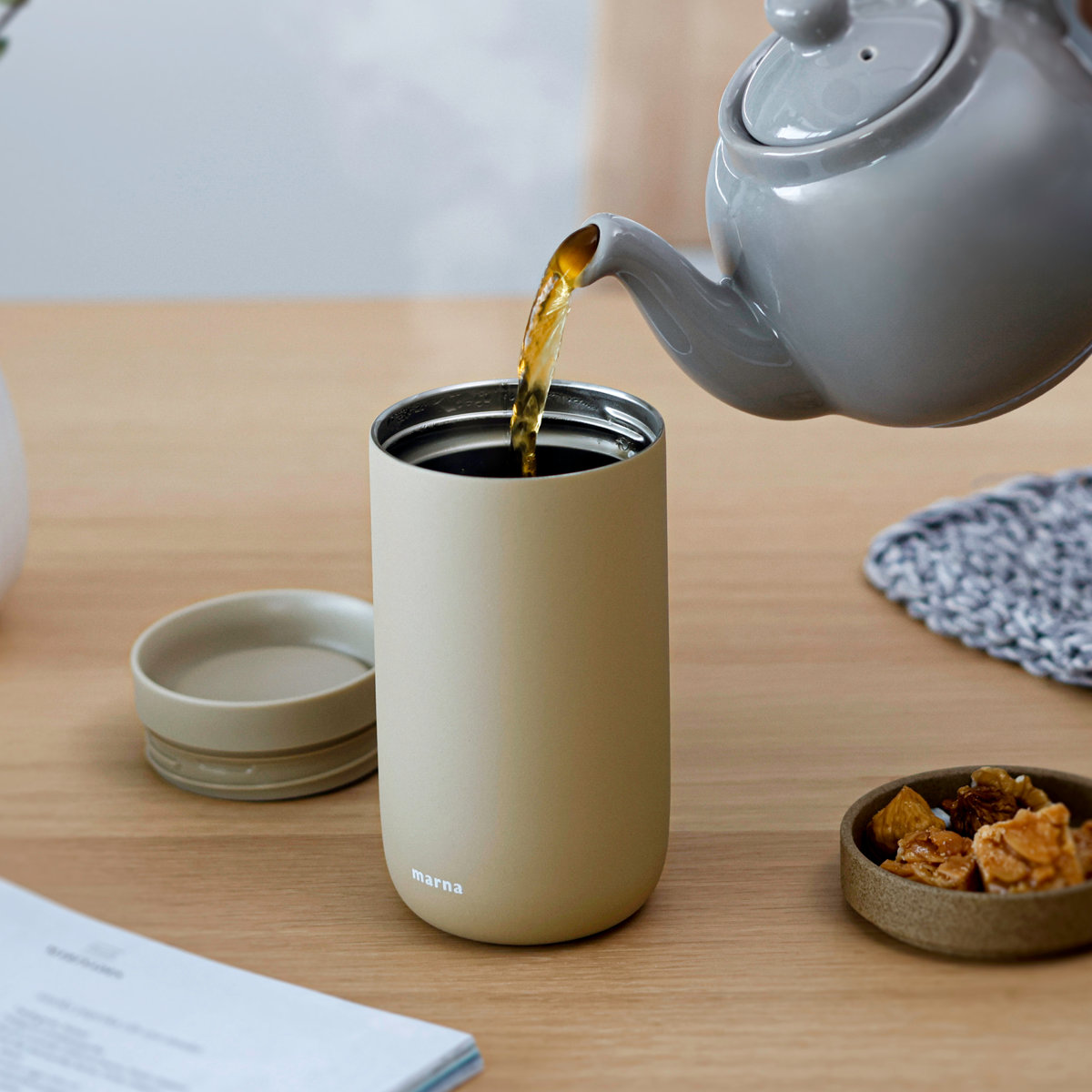 真空二層構造で保温・保冷性を高め、おいしい温度を保ちます。フタがあるので長時間熱を逃がしません。冷たいお茶から温かいコーヒーまで1年を通して使えるタンブラーです。