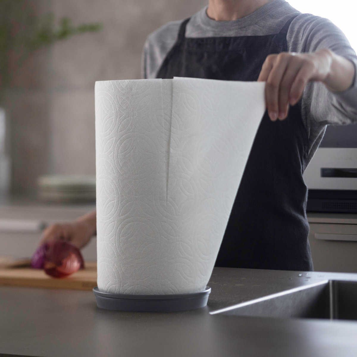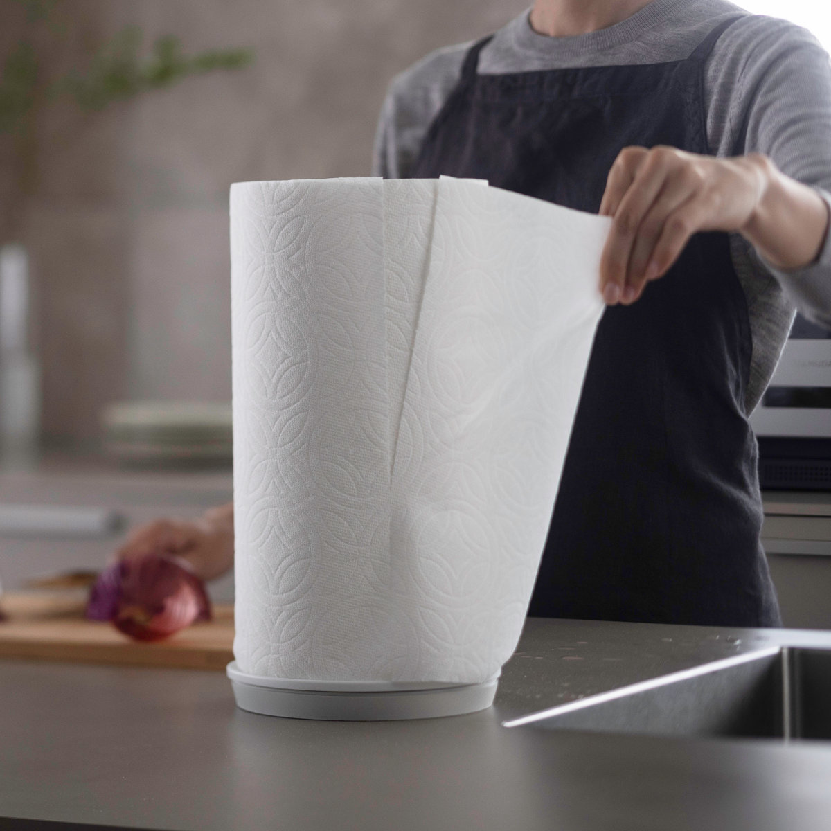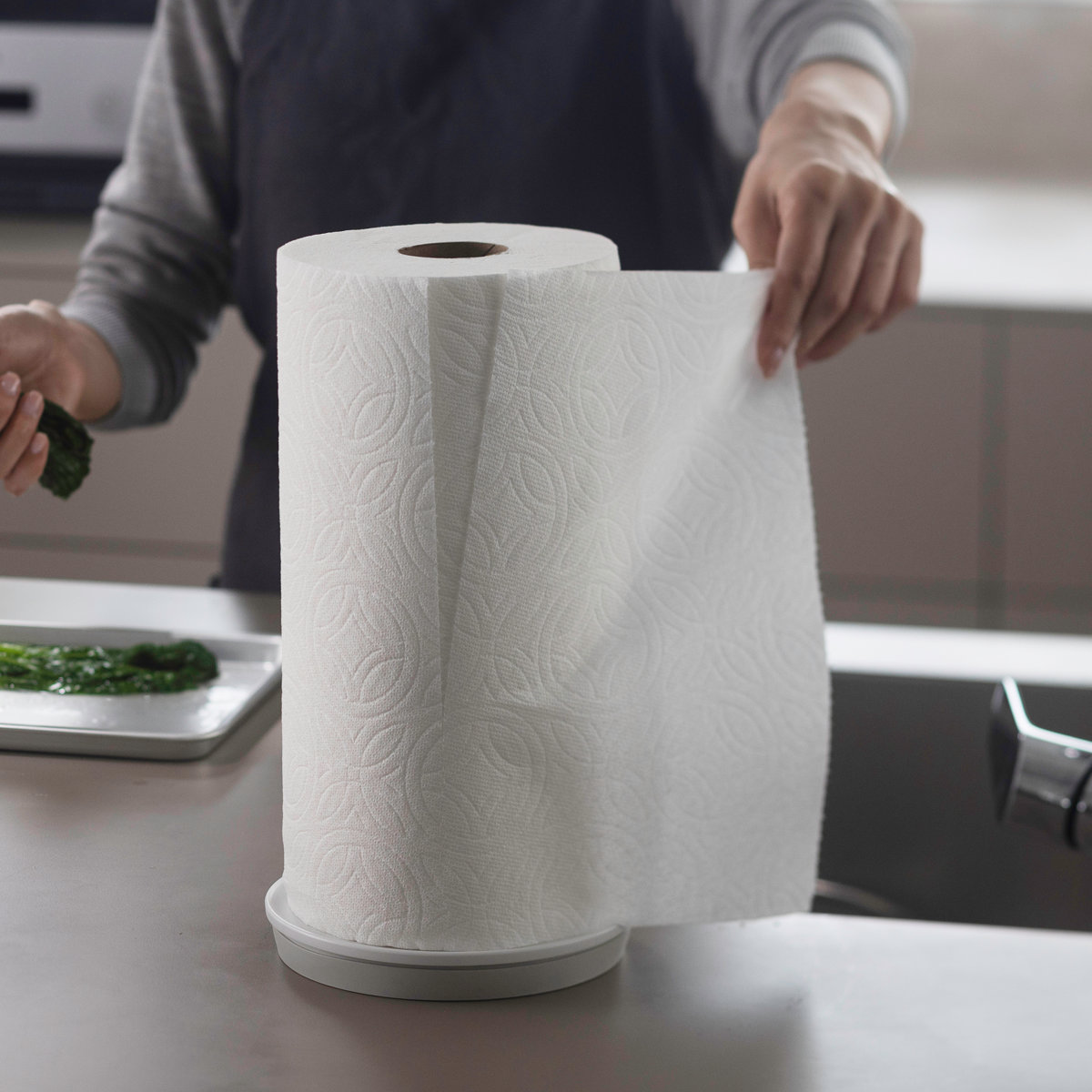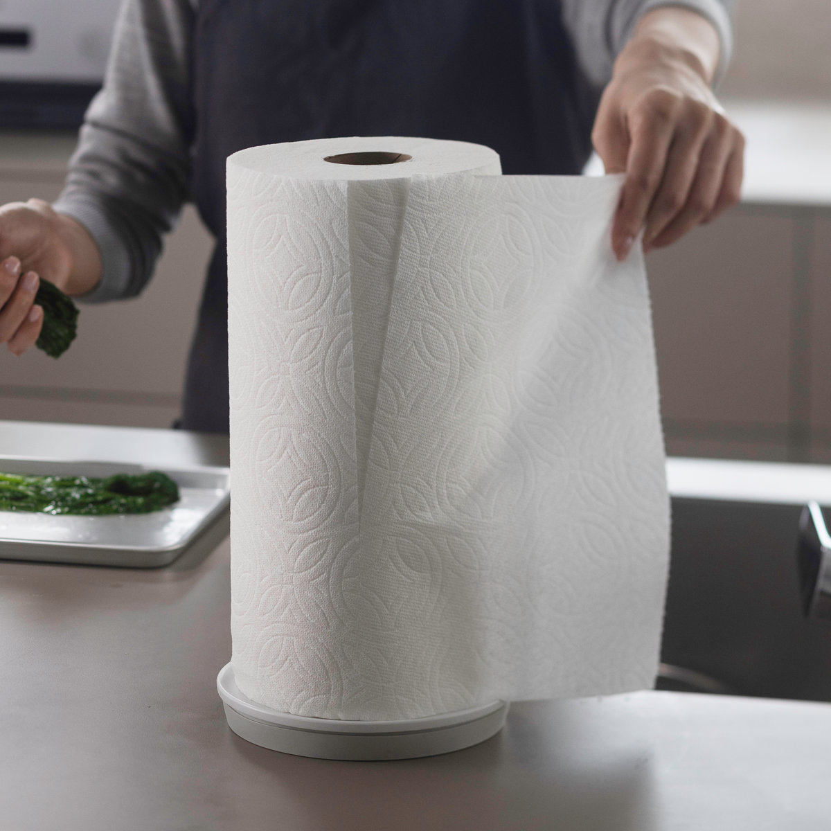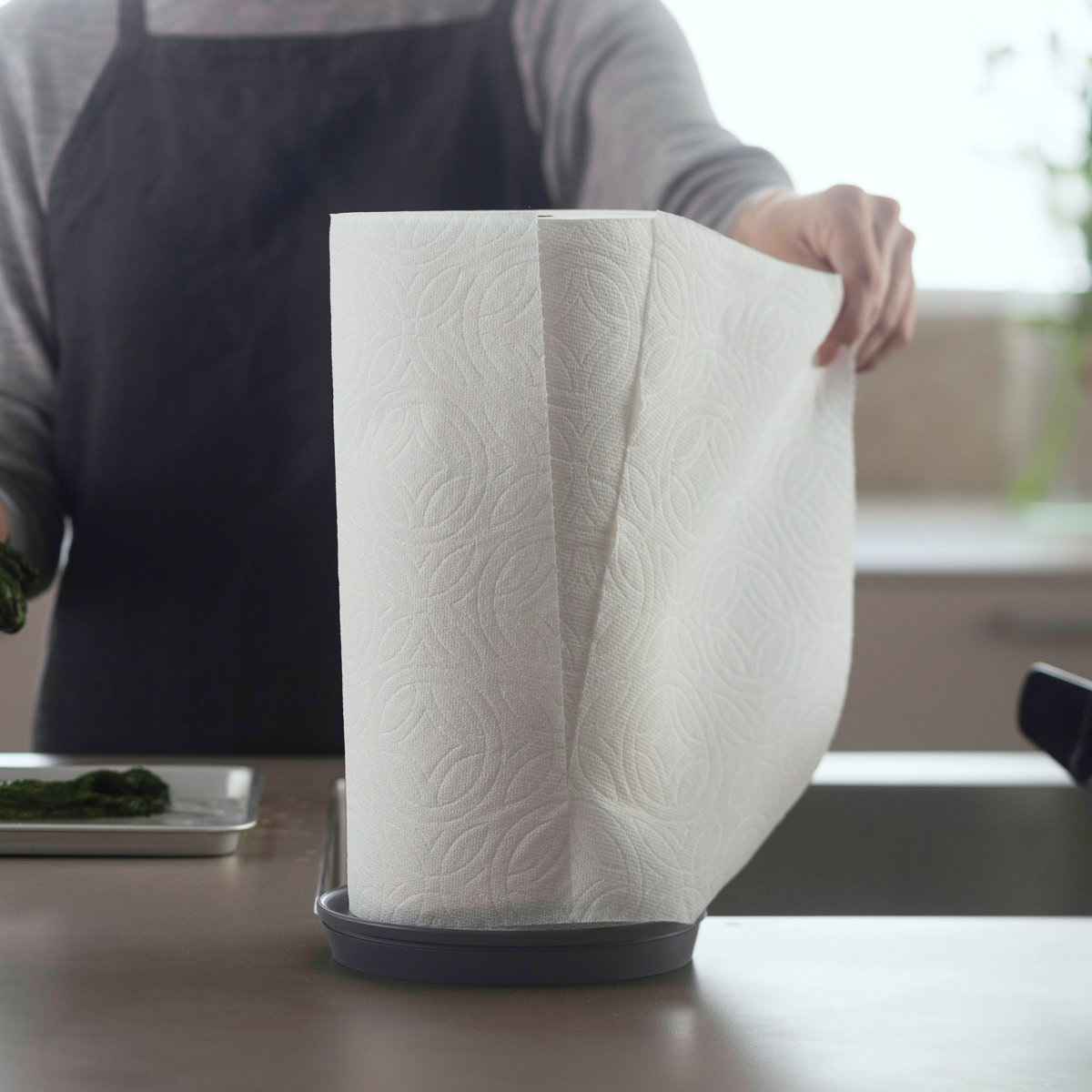 ベースがキッチンペーパー1つ分の大きさだから、コンパクトに設置ができて、さまざまなキッチンペーパーに対応可能です。