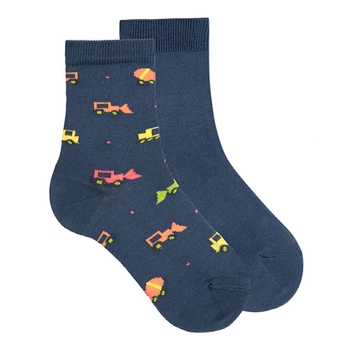 ■カラフルなトラック柄のソックス1足とシンプルな無地のソックス1足の2足セットです。