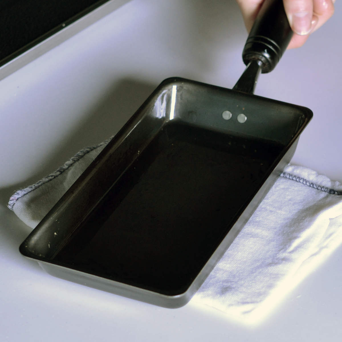 | 材質 | 本体:鉄(底の厚さ1.6mm)、表面加工(透明シリコーン焼付塗装) 取っ手:天然木 接合部:鉄(クロームメッキ) |