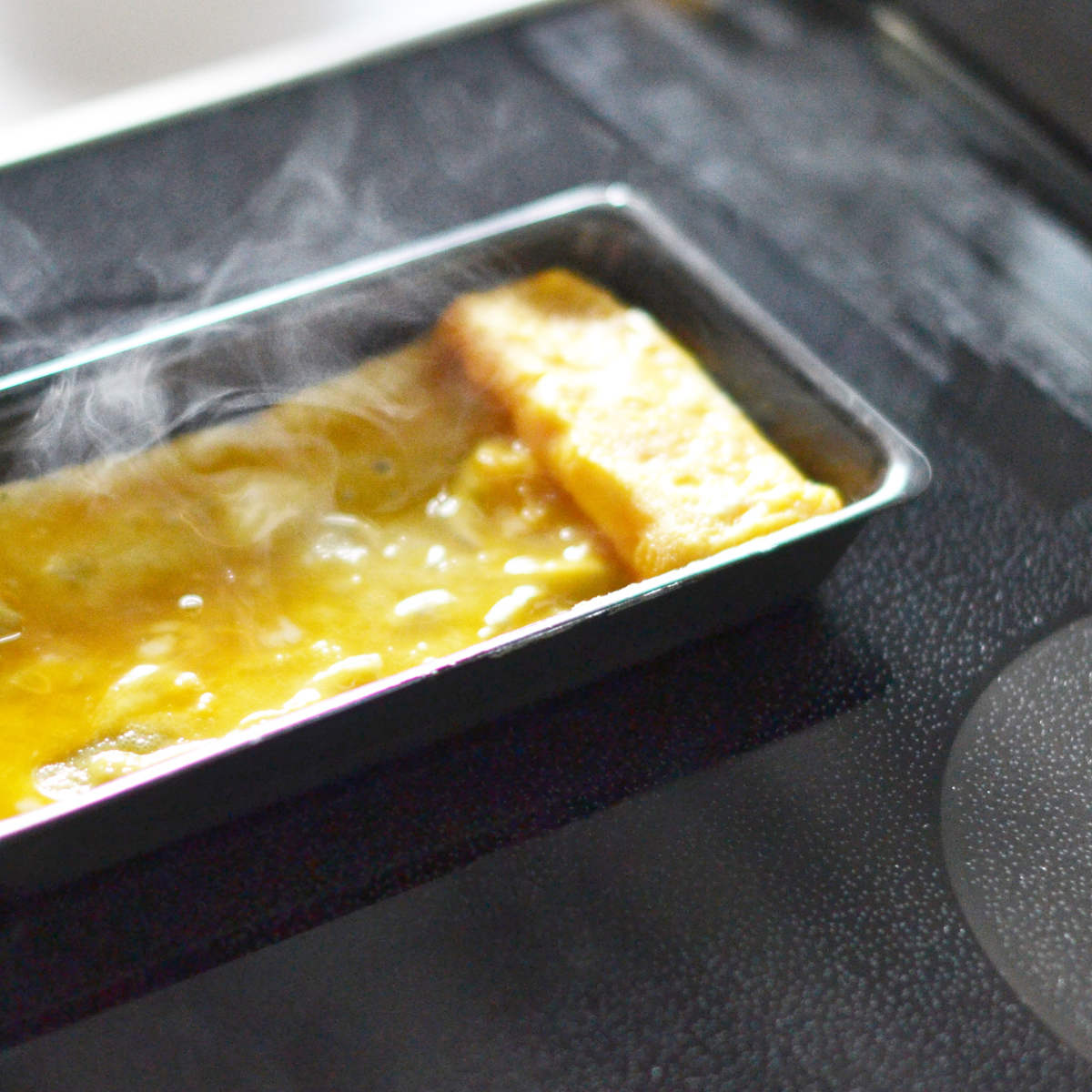 通常3個程度の卵を使って作る卵焼きを1個でも厚く作れる卵焼き器です。1~2人分のお弁当に嬉しいサイズです。さらに焼き面が小さいコンパクトサイズもございます。