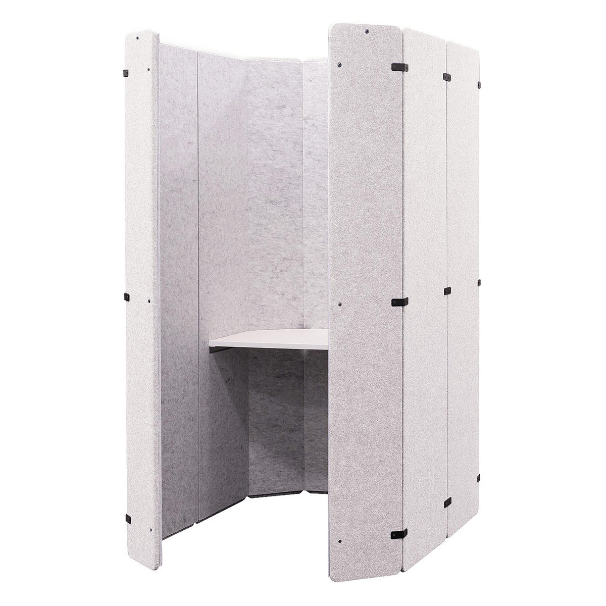 組み立て時に入り口の位置をフロントとサイドで変更できるので、空間に合わせてブースを設置できます。