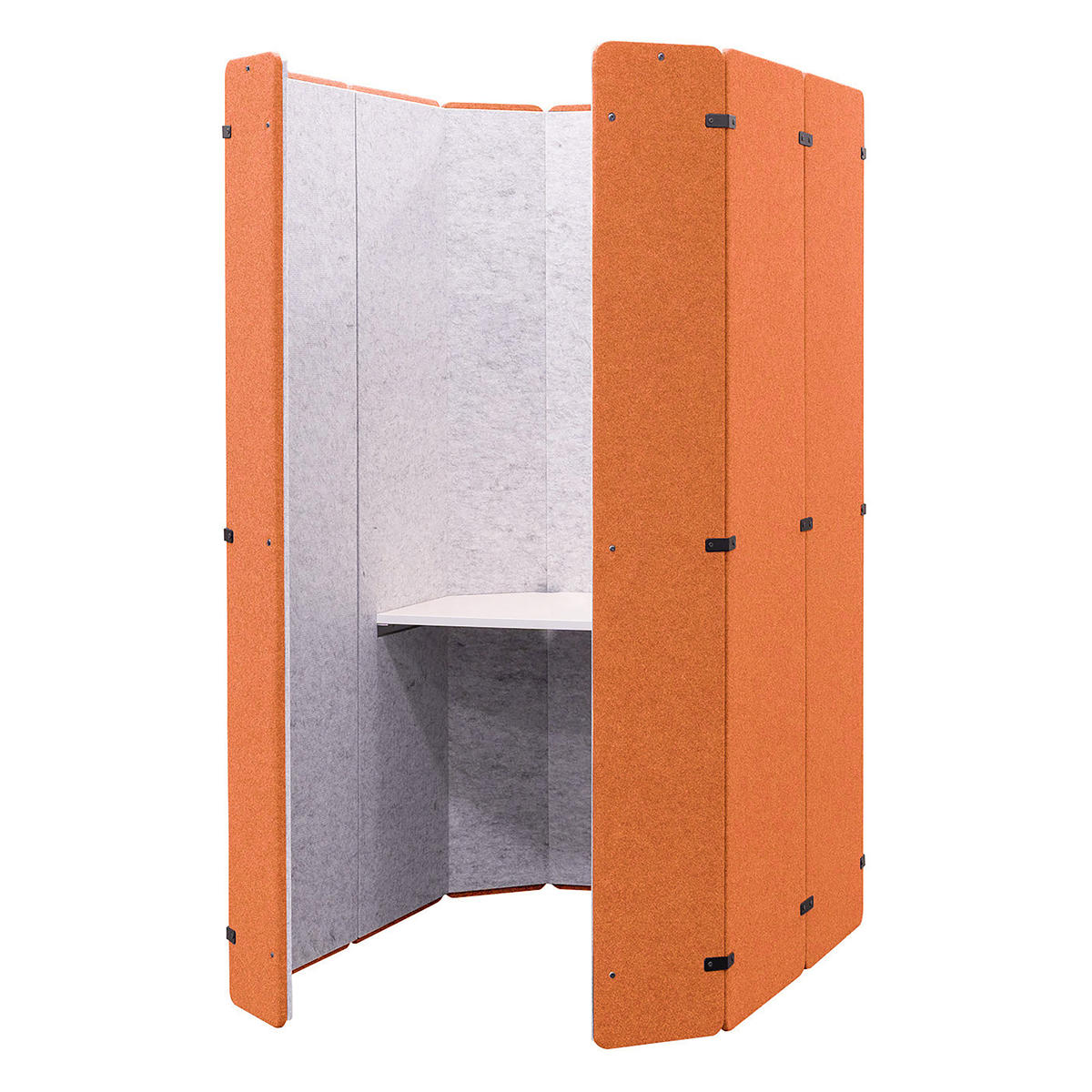 組み立て時に入り口の位置をフロントとサイドで変更できるので、空間に合わせてブースを設置できます。
