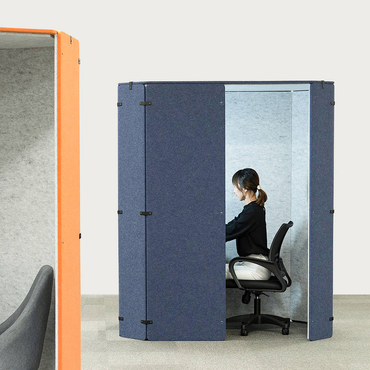 オフィスブース オクタとセットでお使いいただける専用ルーフです。天面の吸音効果を高め、上部からの音漏れを軽減するので、安心感のある個室タイプのブースになります。