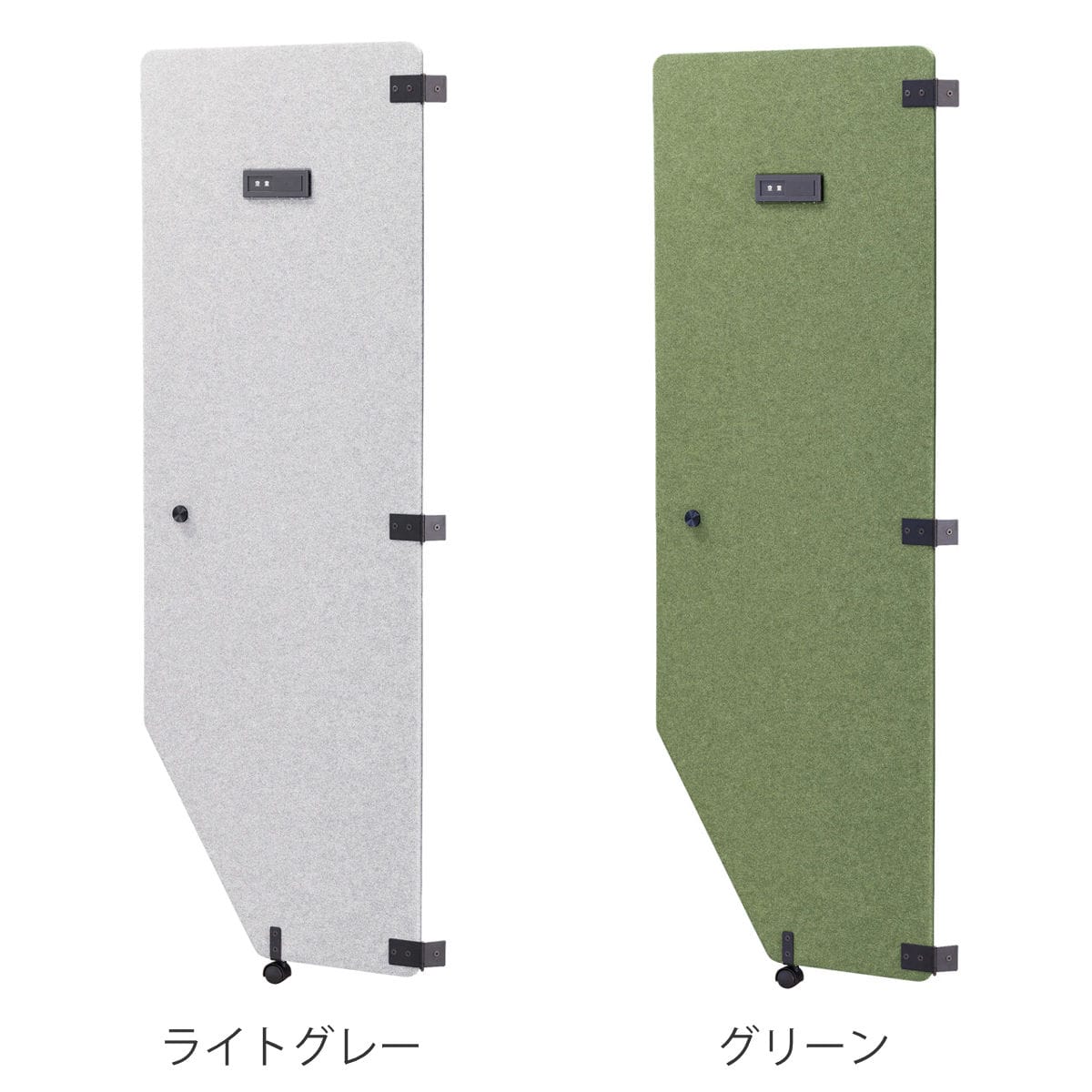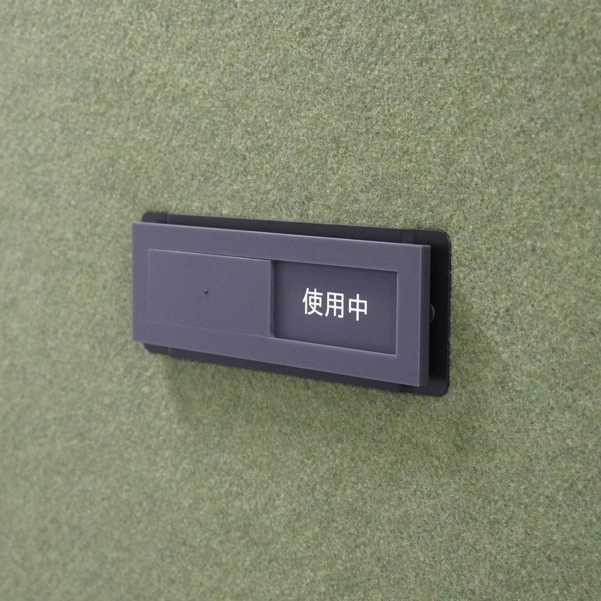 ブースの使用状況が一目でわかるプレート付きです。表示部分を左右にスライドさせると、空室/使用中を切り替えることができます。