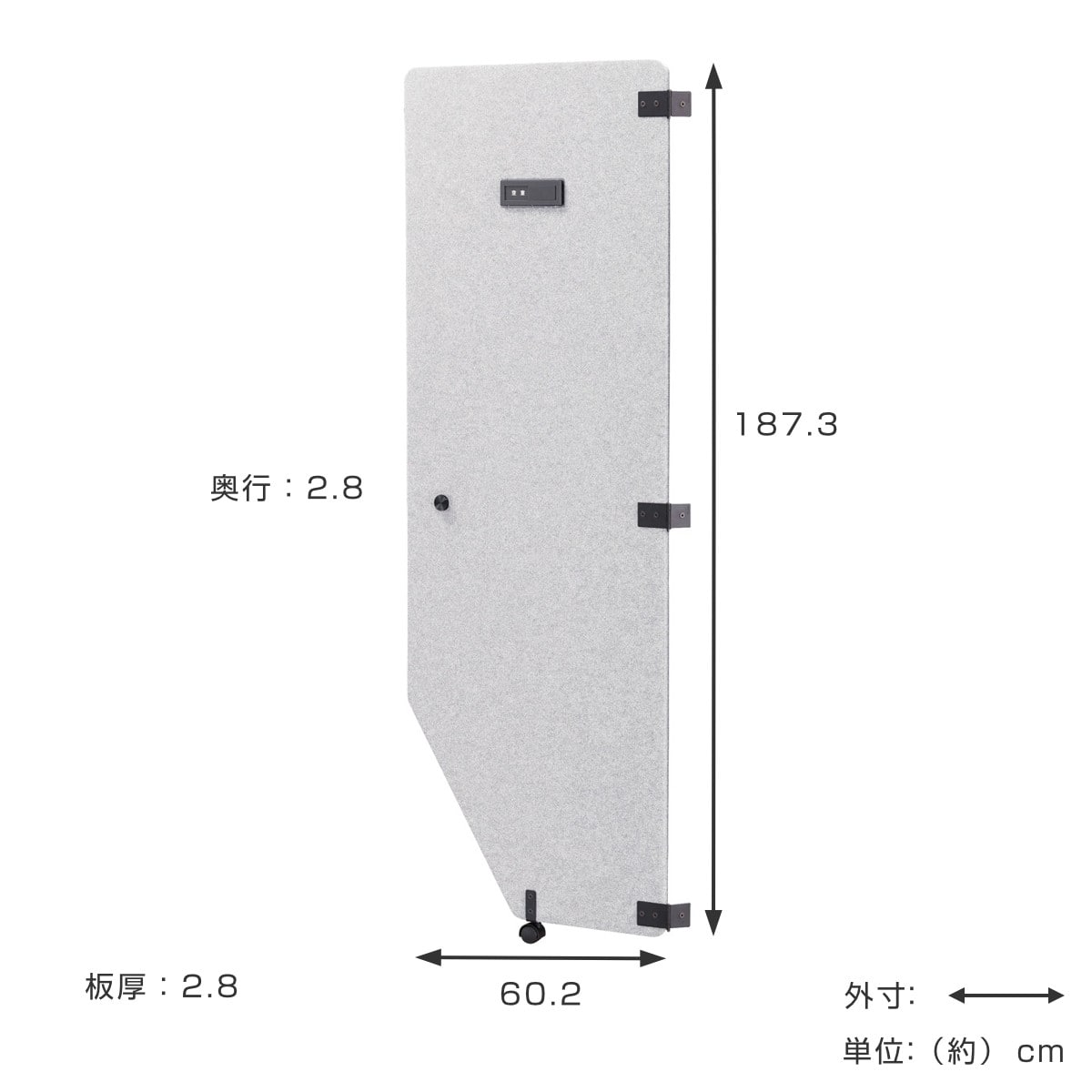 | 材質 | 吸音ボード:PP、タルク、ポリエステル 不織布:PET サインプレート:アクリル樹脂 取っ手:アルミニウム、スチール 金具・ネジ・六角レンチ・スパナ:スチール Eリング:ステンレス鋼 キャスター:ナイロン、スチール |