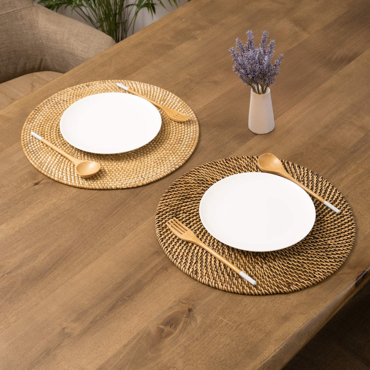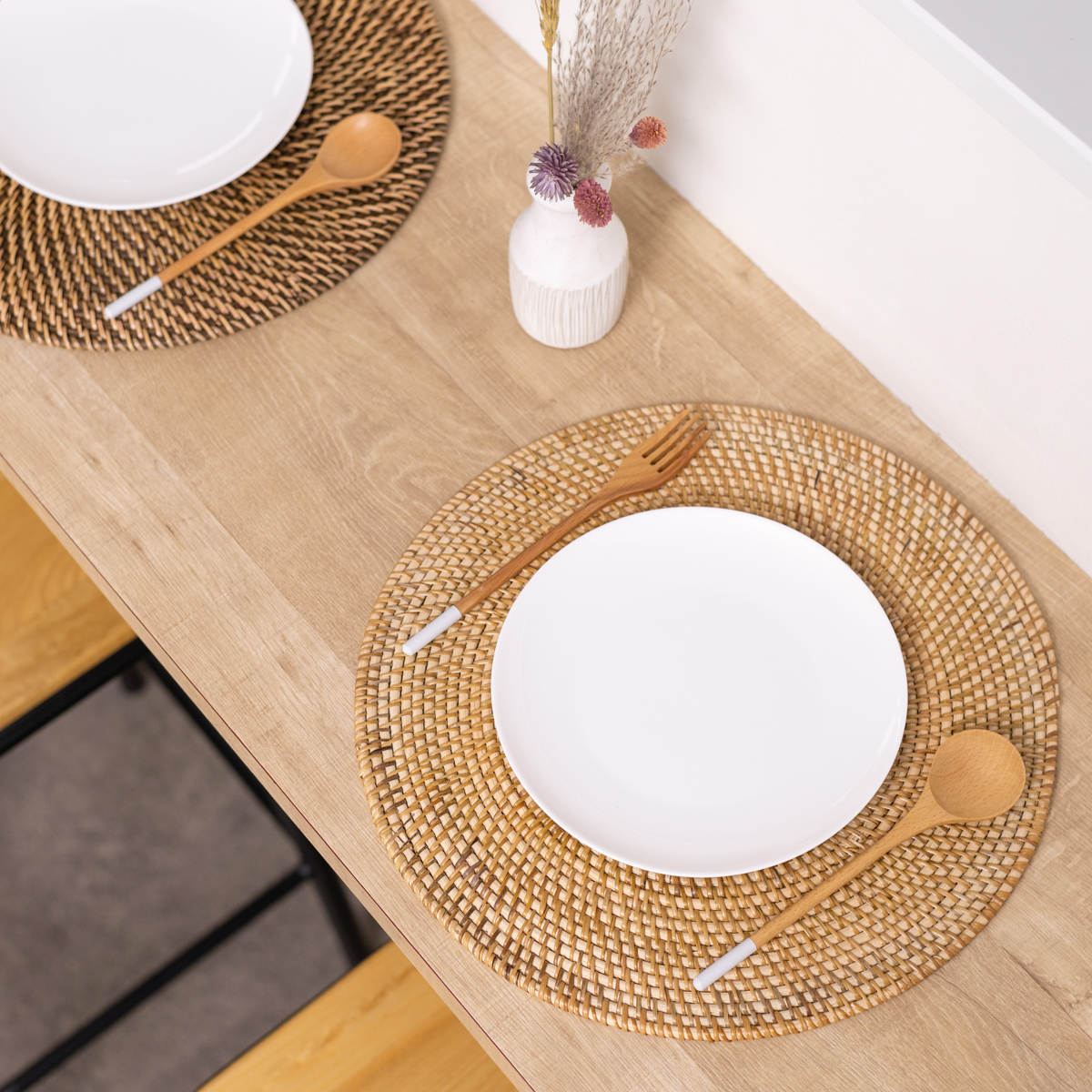 軽量でありながらしっかりとした硬さのあるラタン素材のプレイスマットです。手作業で丁寧に編み込まれた丈夫な作りになっており、いつもの食卓にプラスするだけで料理や器が引き立ち、特別感のあるテーブルコーディネートに仕上がります。