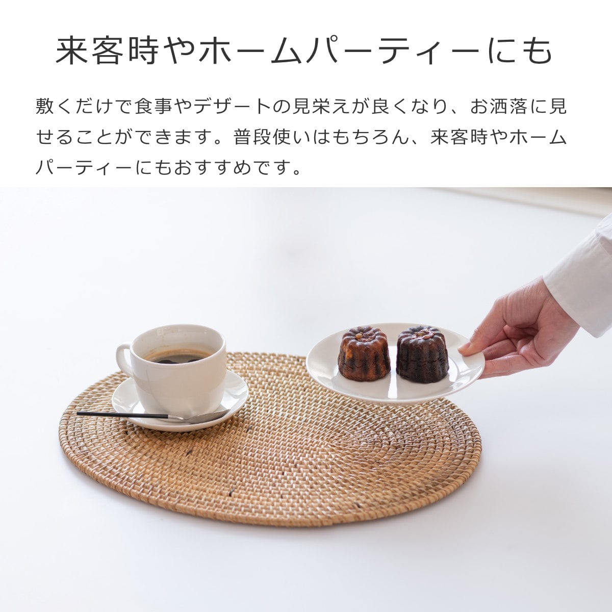 敷くだけで食事やデザートの見栄えが良くなり、お洒落に見せることができます。普段使いはもちろん、来客時やホームパーティーにもおすすめです。