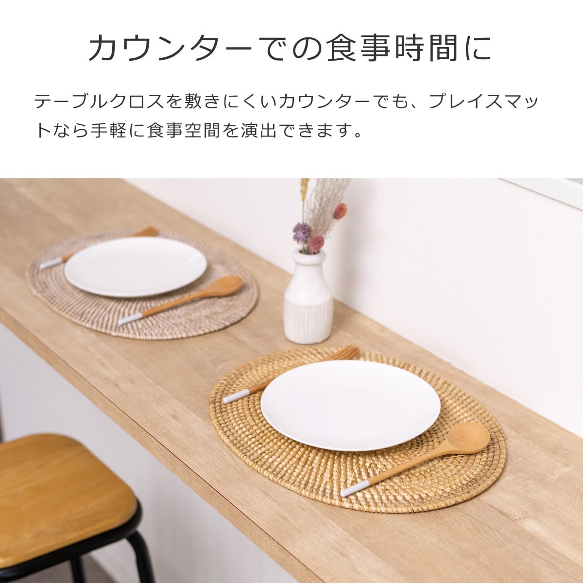 朝食や軽食、忙しい時など、カウンターでサッと食事を済ませることはありませんか?テーブルクロスを敷きにくいカウンターでも、プレイスマットなら手軽に食事空間を演出できます。