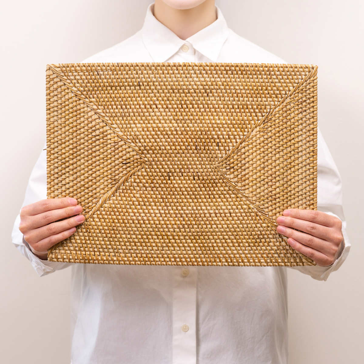軽量でありながらしっかりとした硬さのあるラタン素材のプレイスマットです。手作業で丁寧に編み込まれた丈夫な作りになっており、いつもの食卓にプラスするだけで料理や器が引き立ち、特別感のあるテーブルコーディネートに仕上がります。