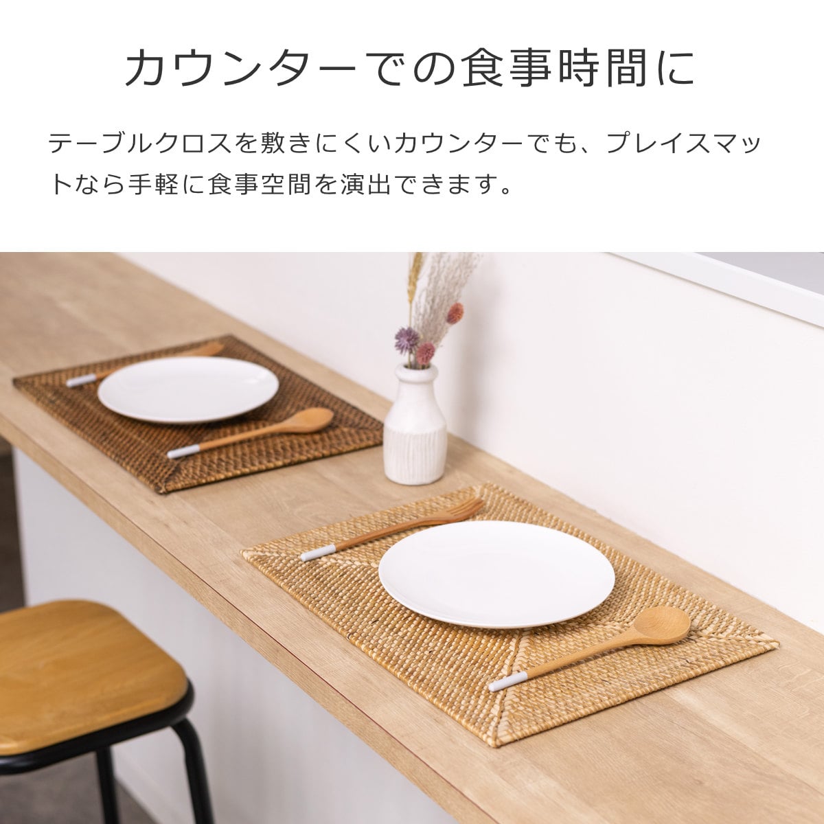 朝食や軽食、忙しい時など、カウンターでサッと食事を済ませることはありませんか?テーブルクロスを敷きにくいカウンターでも、プレイスマットなら手軽に食事空間を演出できます。