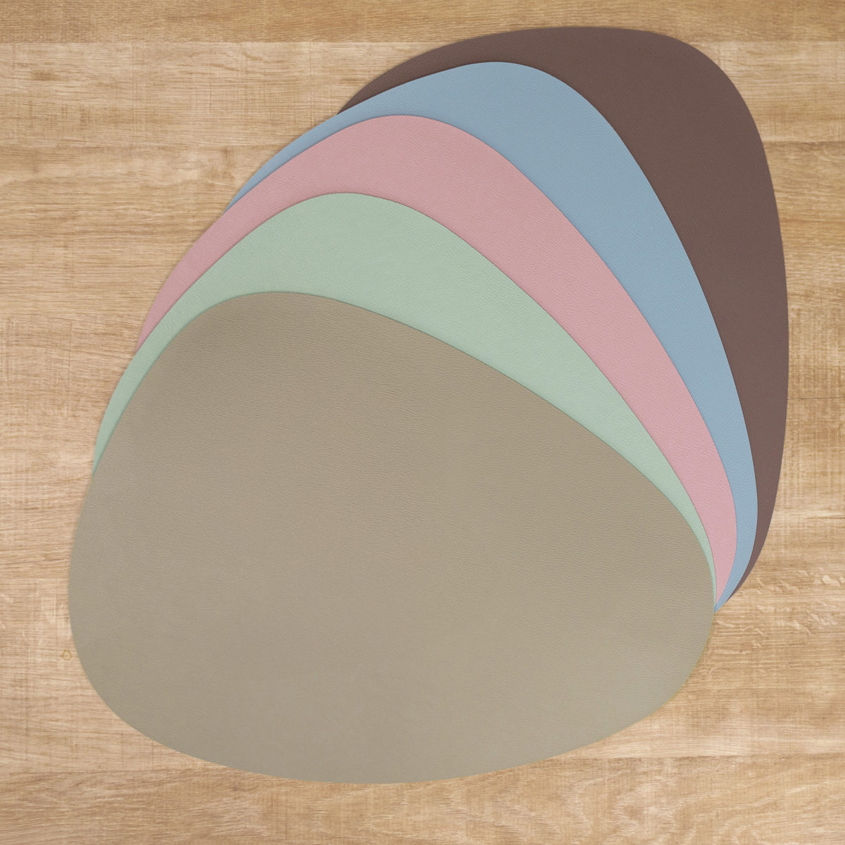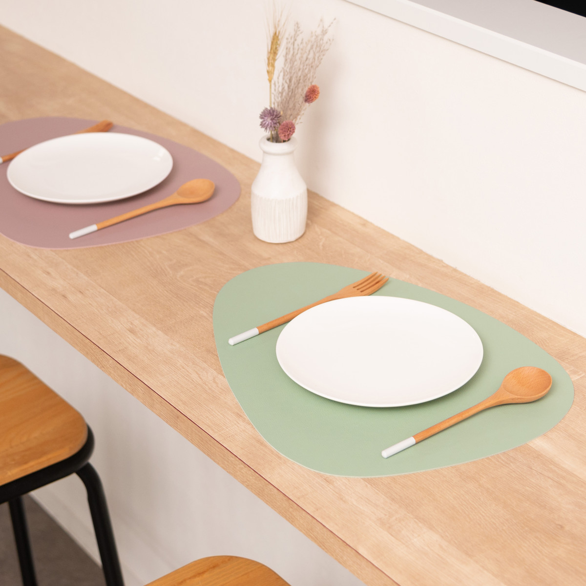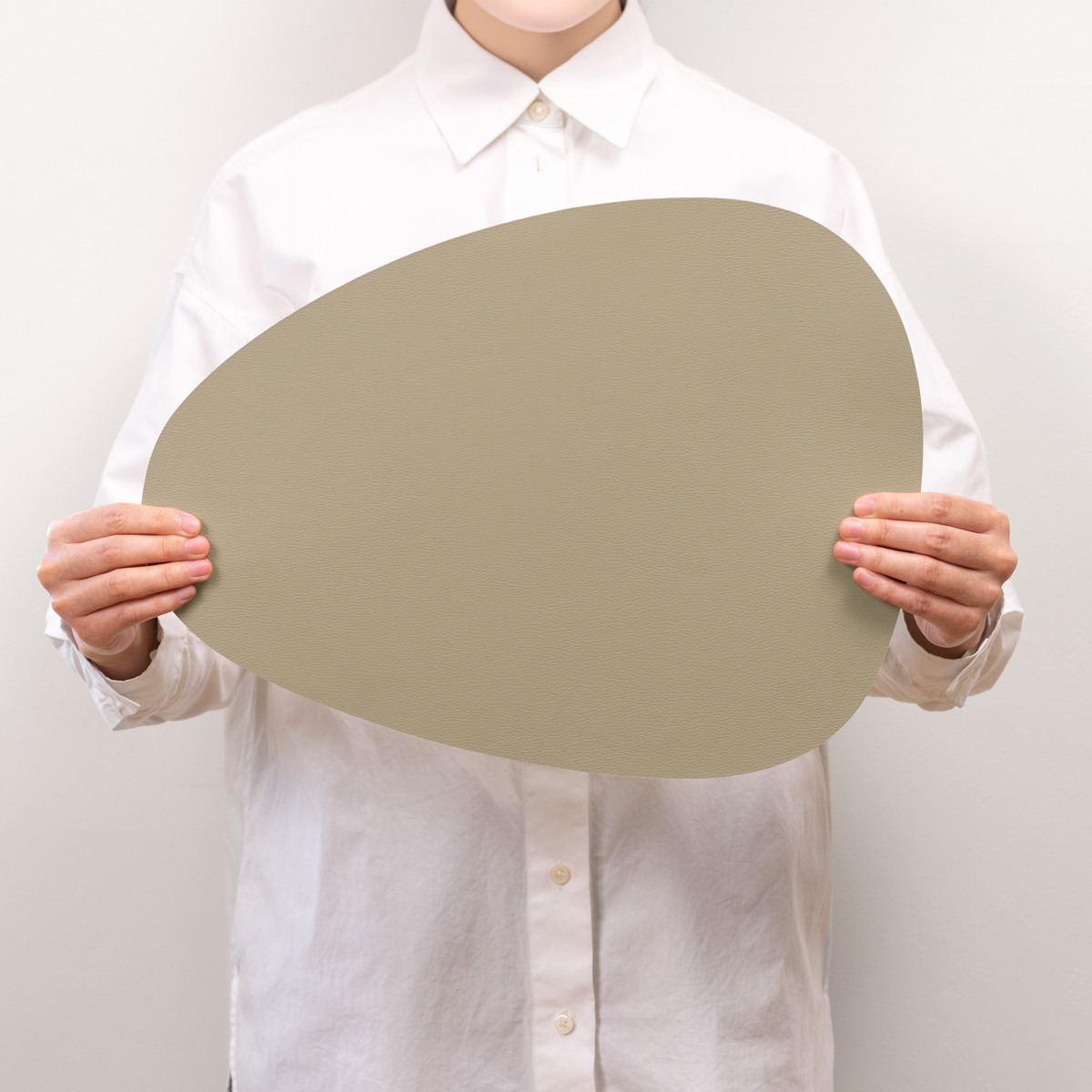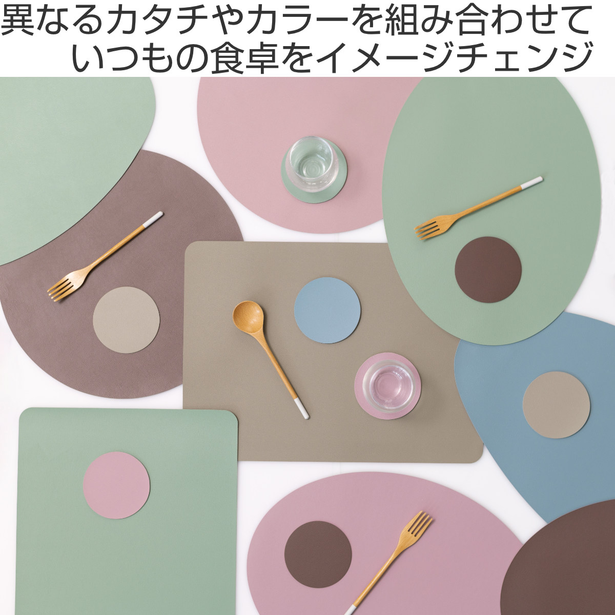 柔らかいレザーのような質感と、少しくすみのある上品なニュアンスカラーを組み合わせたプレイスマットです。いつもの食卓にプラスするだけで料理や器が引き立ち、テーブルコーディネートがより華やかになります。