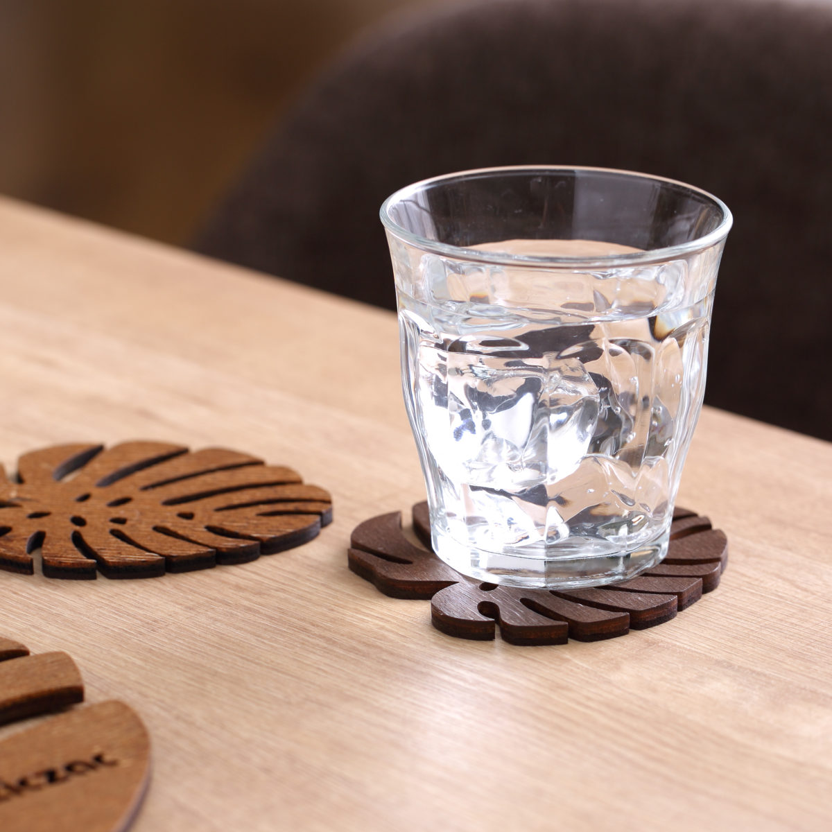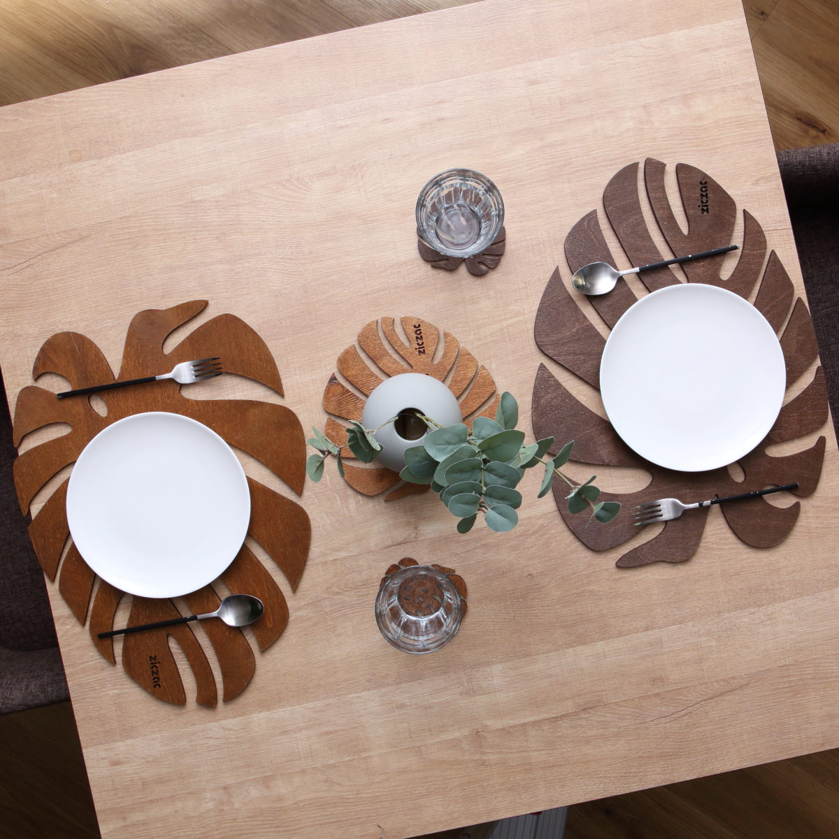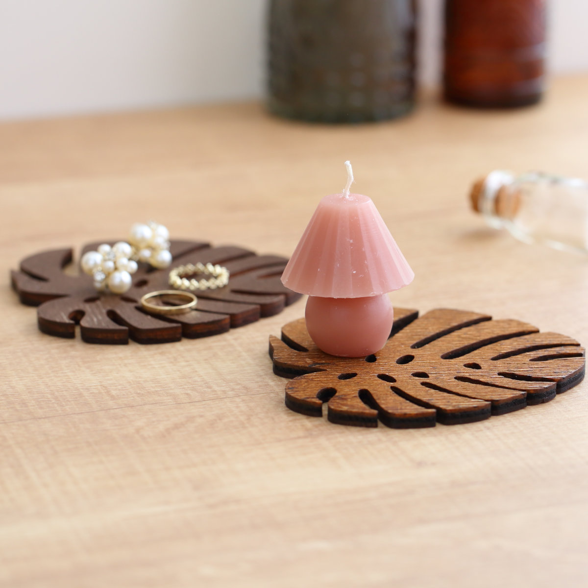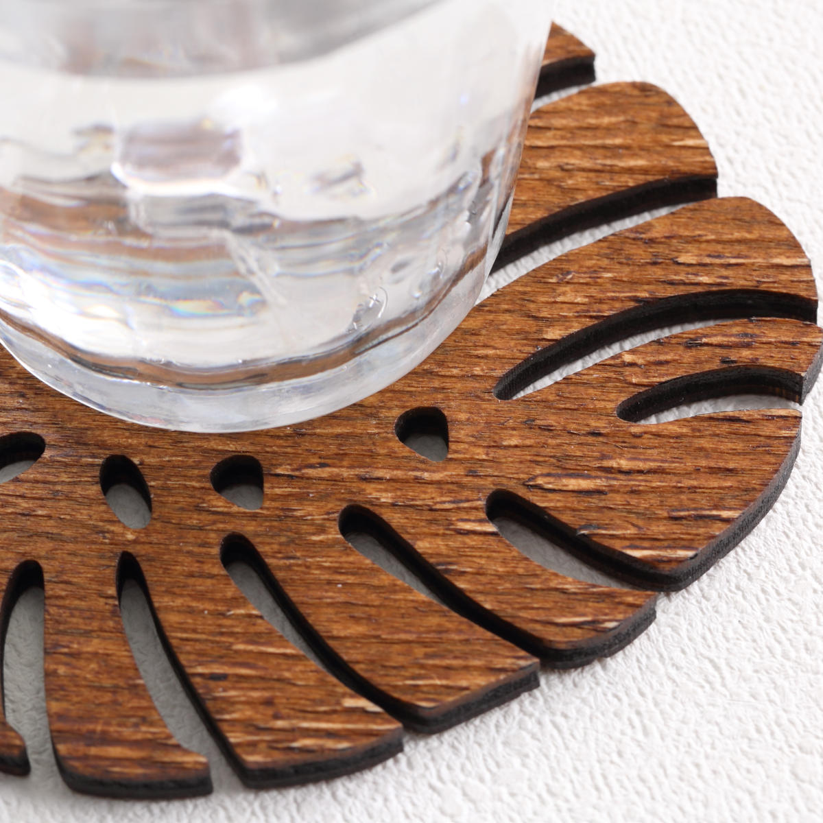 バーチ材を使用した、個性的なモンステラリーフデザインのコースターです。天然素材ならではのやさしい風合いが魅力で、いつもの食卓にプラスするだけで料理や器が引き立ちます。