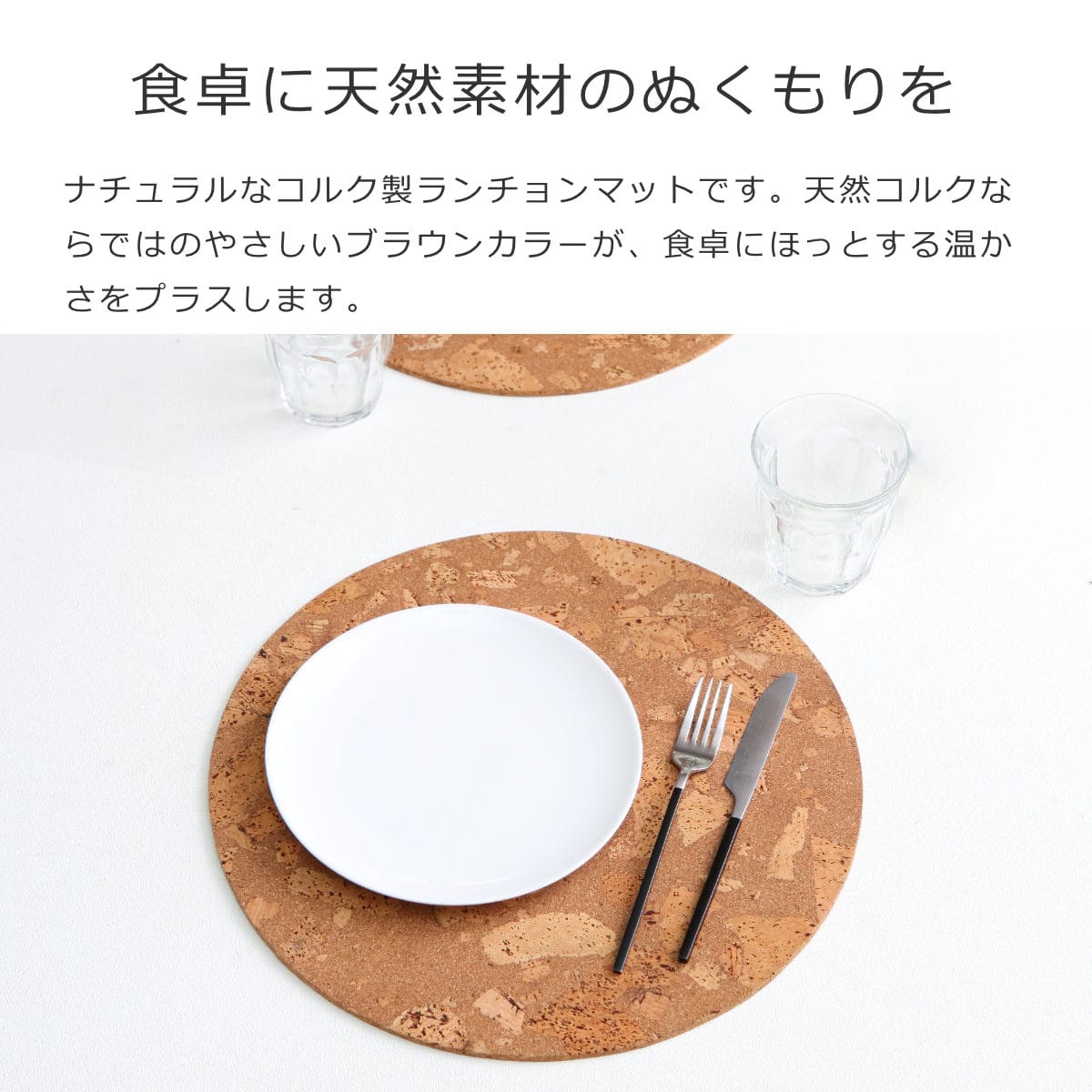 ナチュラルなコルク製ランチョンマットです。天然コルクならではのやさしいブラウンカラーが、食卓にほっとする温かさをプラスします。素材の風合いを大切にしたシンプルなデザインで、和食にも洋食にもマッチします。
