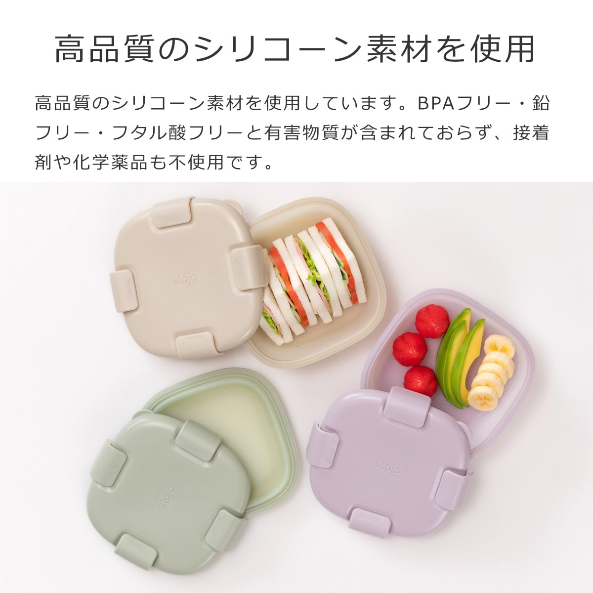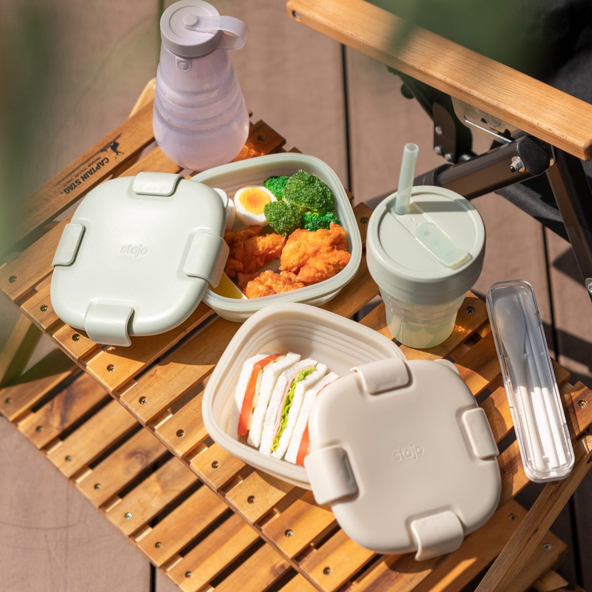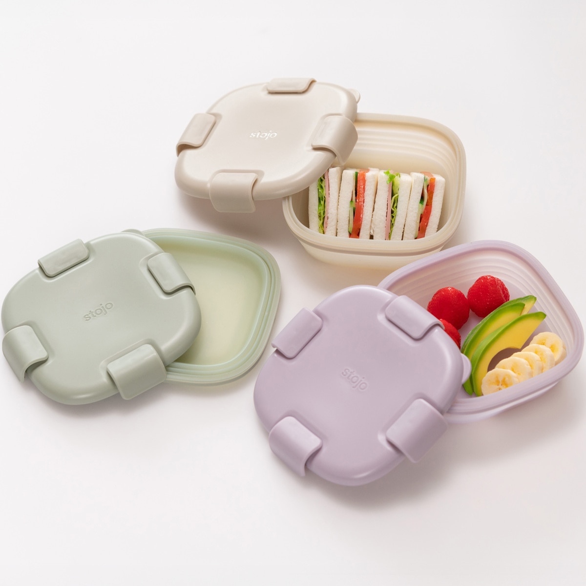 折りたためば高さわずか2.5cmと薄くコンパクトになるランチボックス。軽くて柔らかいシリコーン素材で、フタを外してペタンと潰すだけで簡単に折りたためて、食後も場所を取らずスマートに持ち運べます。
