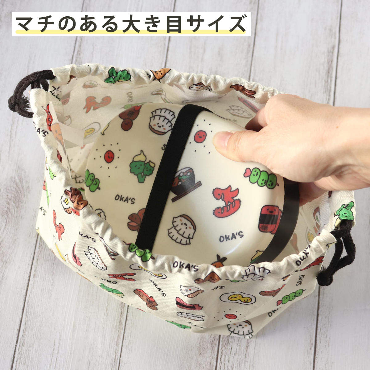 マチのある大き目サイズなので、お弁当の出し入れも簡単です。同シリーズのお弁当箱は全て入ります。