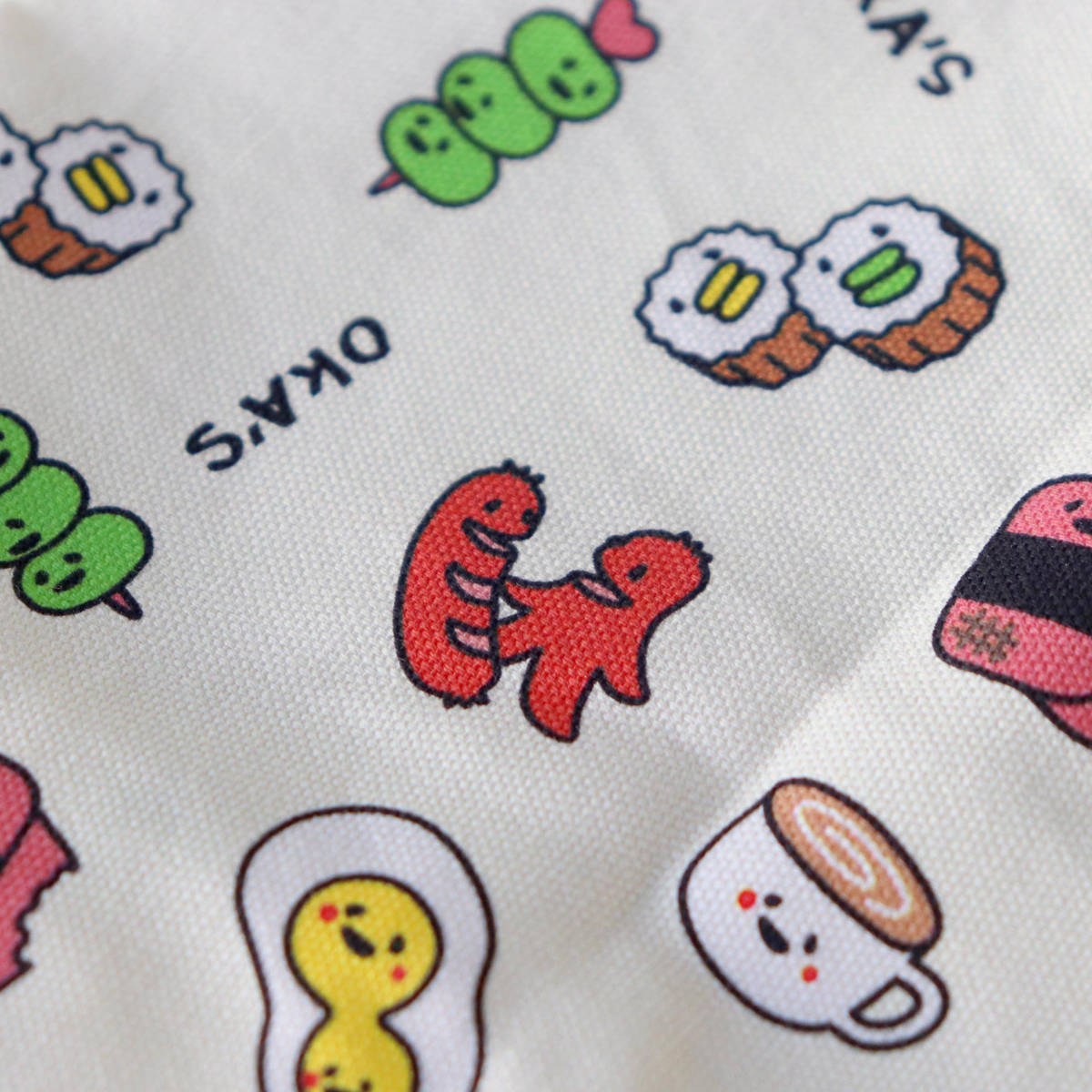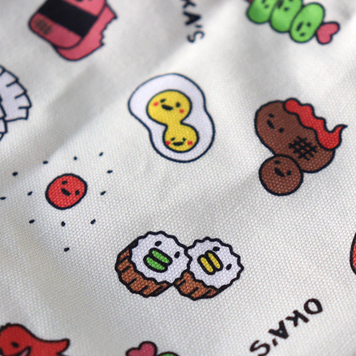 オカズ柄を全体に散りばめた可愛いデザインです。