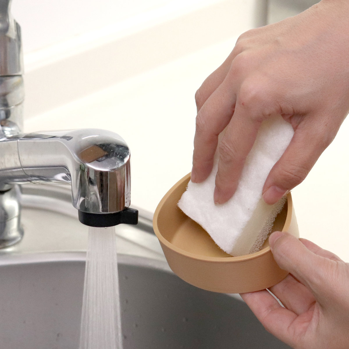 扱いやすい樹脂製のケースで、汚れにくくお手入れも簡単。パーツが少なく角丸デザインなので、スポンジでくるっと洗うだけできれいになります。