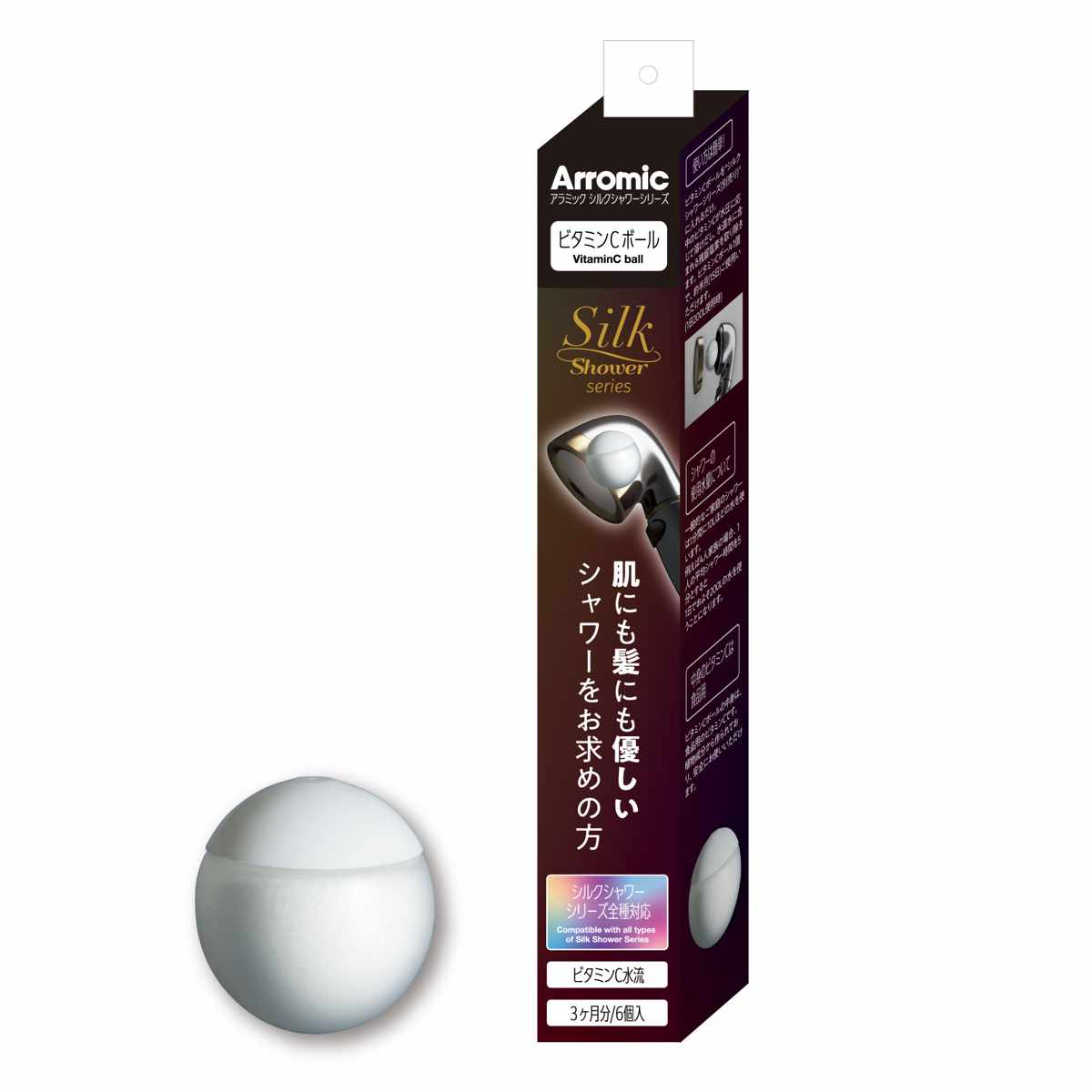 シルクシャワーシリーズすべてにご使用いただけるビタミンCボールです。ボールをシャワーヘッドに入れるだけで、髪や肌にダメージを与える原因のひとつ水道水の塩素を100%除去してくれます。