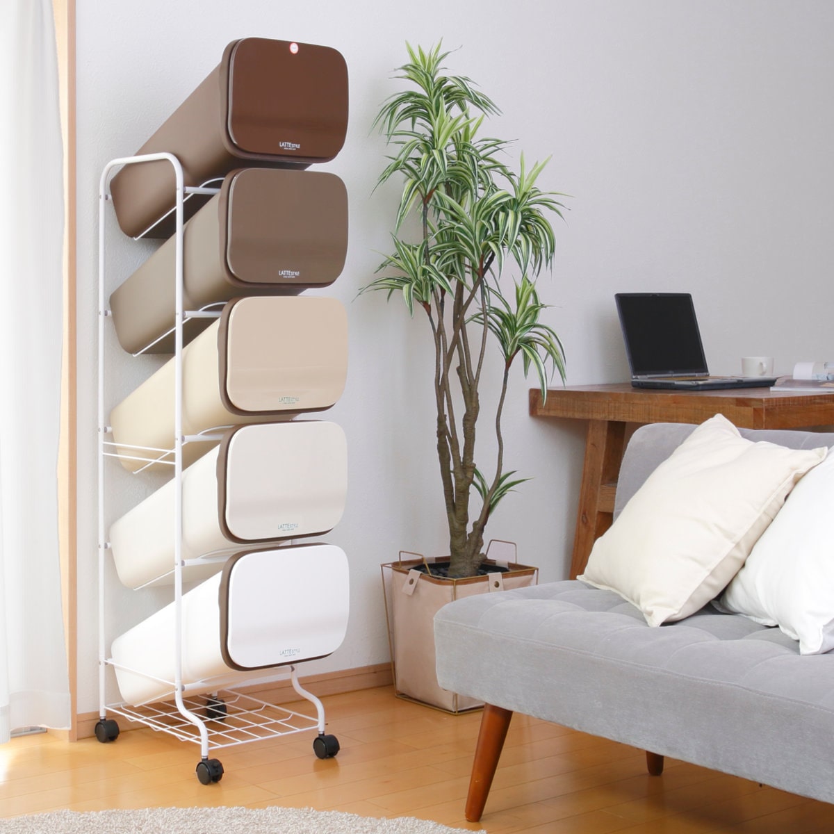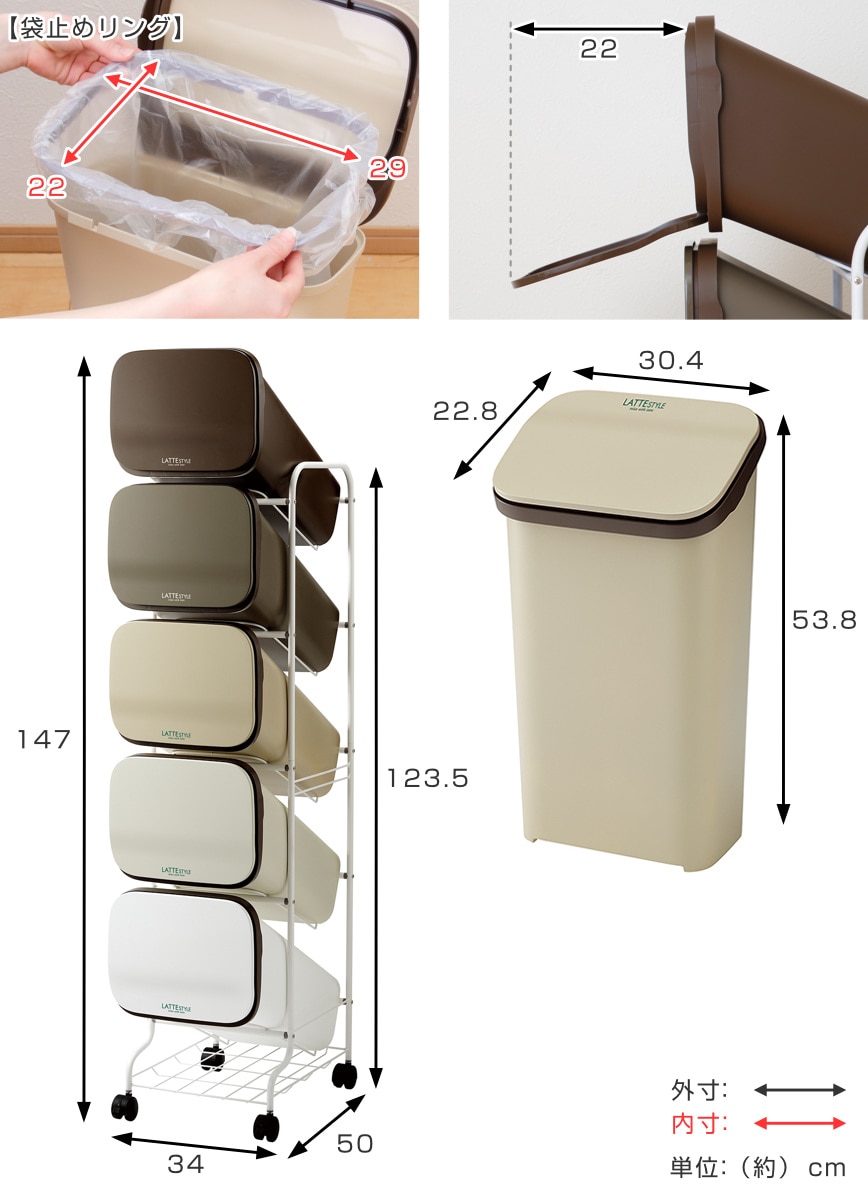 かさばる資源ゴミの分別を省スペース化 19L×5段