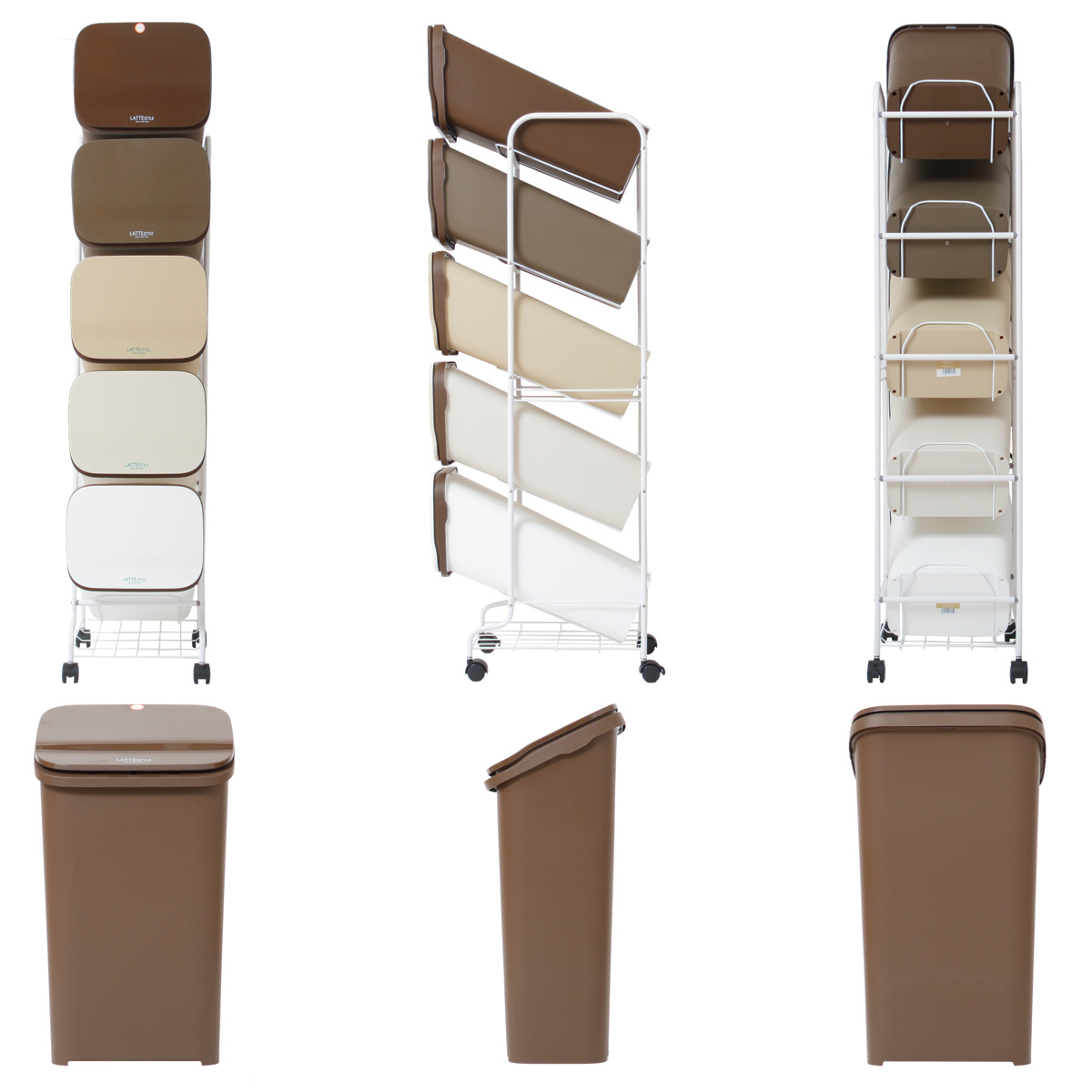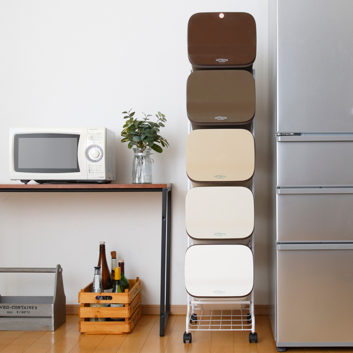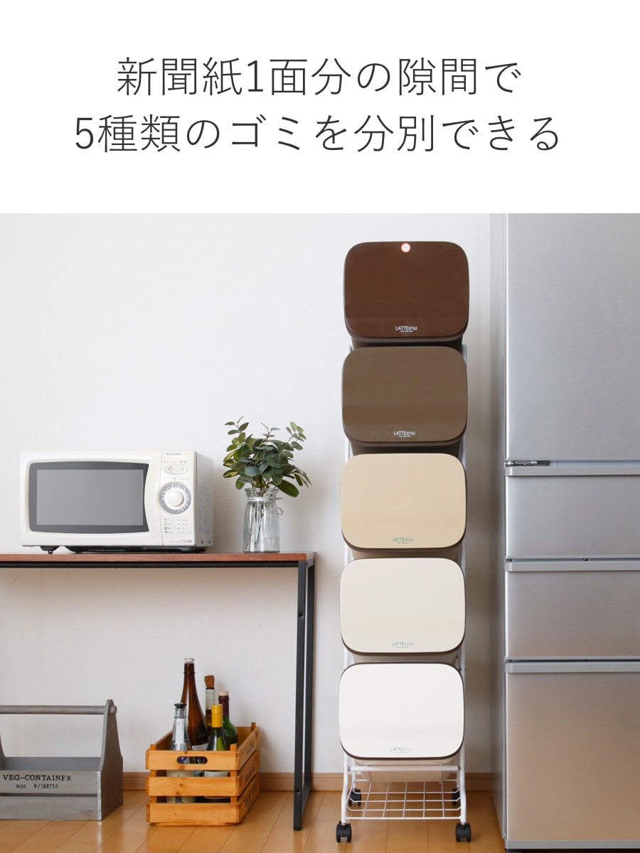 わずかなスペースで5種類のゴミが捨てられる分別ゴミ箱です。縦に積み重ねているので大容量ながら、新聞紙1面分の隙間があれば設置可能です。ワンルームやマンション住まいの方にオススメです。