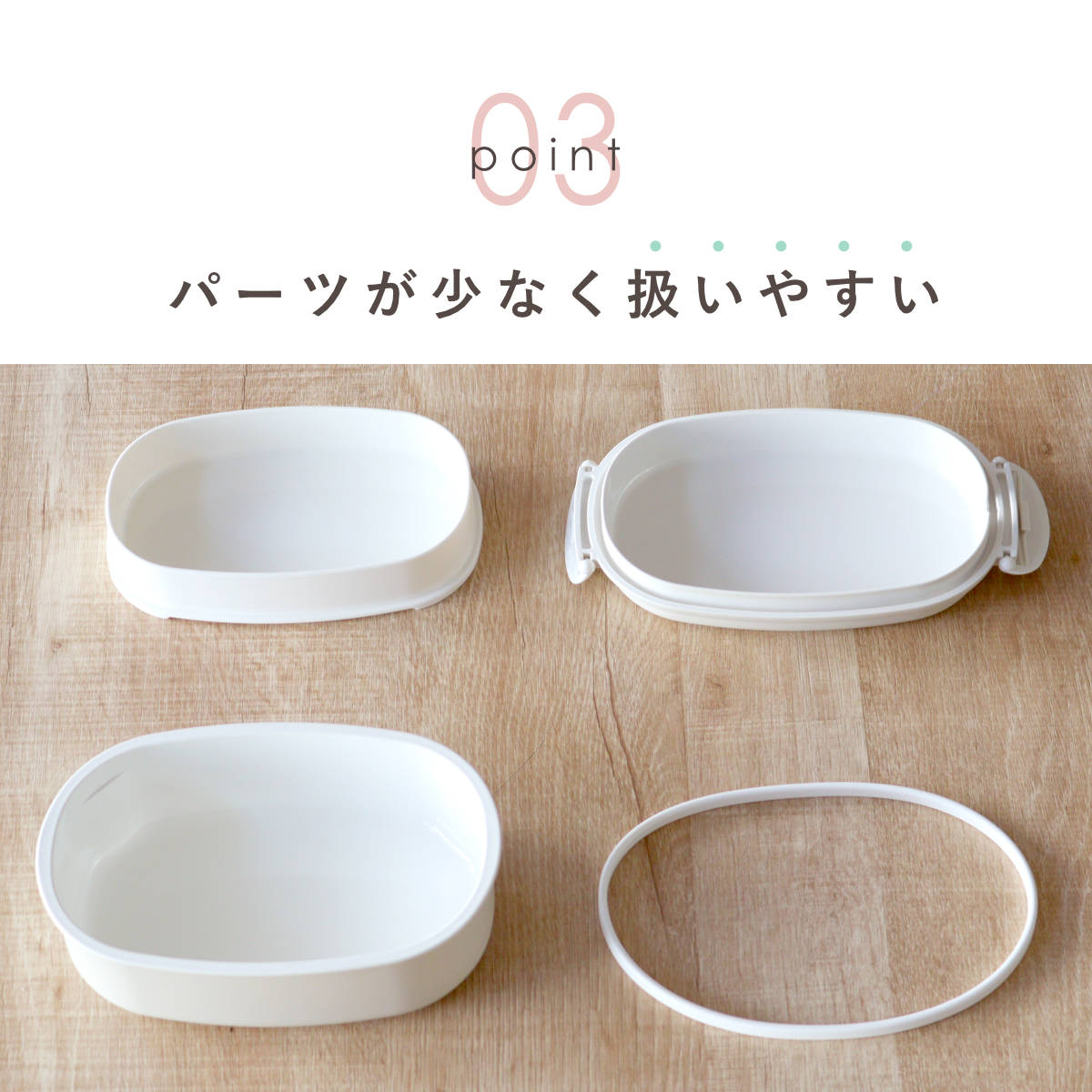 | 材質 | フタ・上段・本体:PET、ABS樹脂 バックル:ABS樹脂 パッキン:シリコーンゴム |