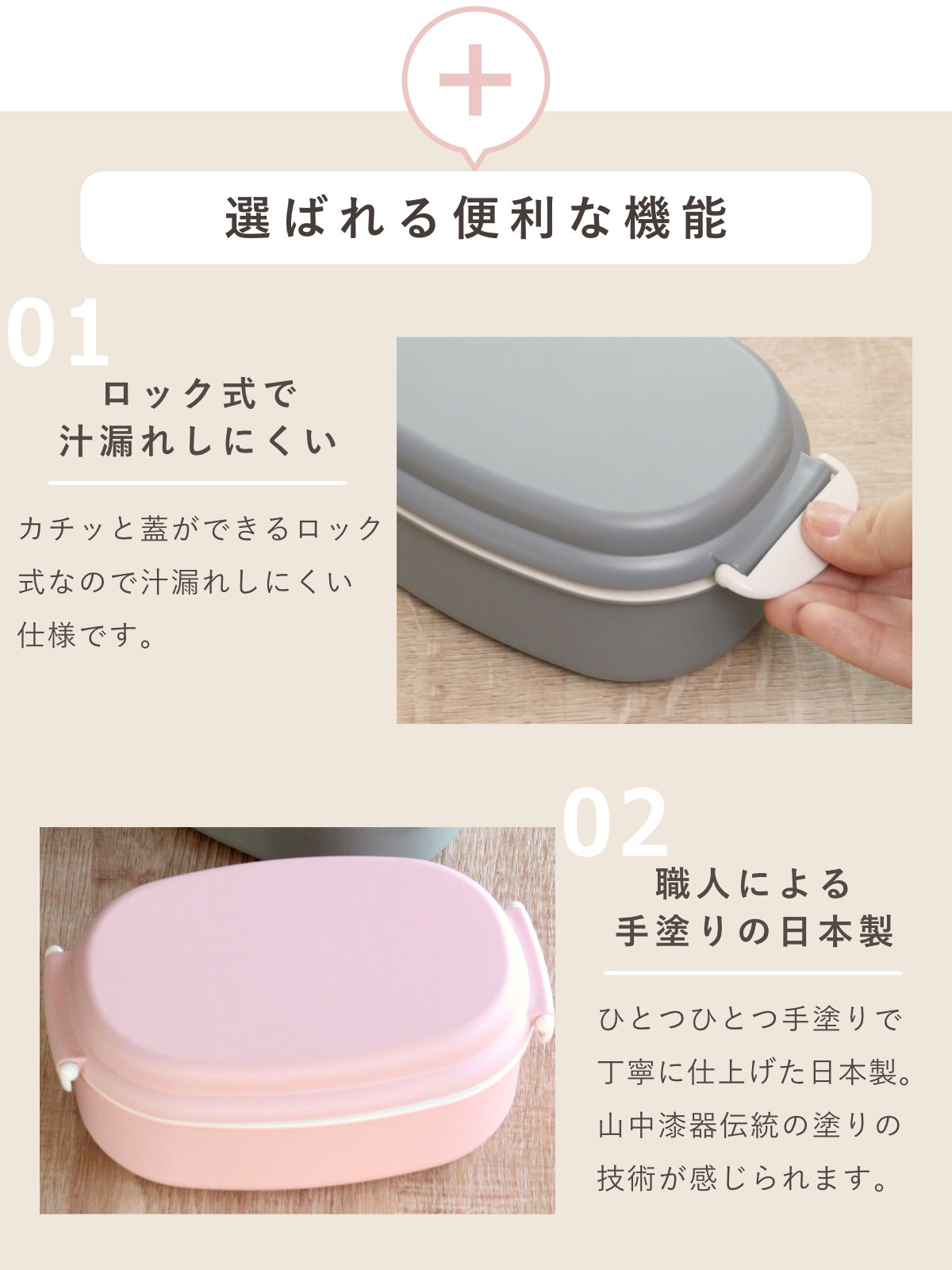 ![]() 480ml 女性や小学生のお子さま、小食の男性に | ![]() 730ml 1段でも2段でも使える |
