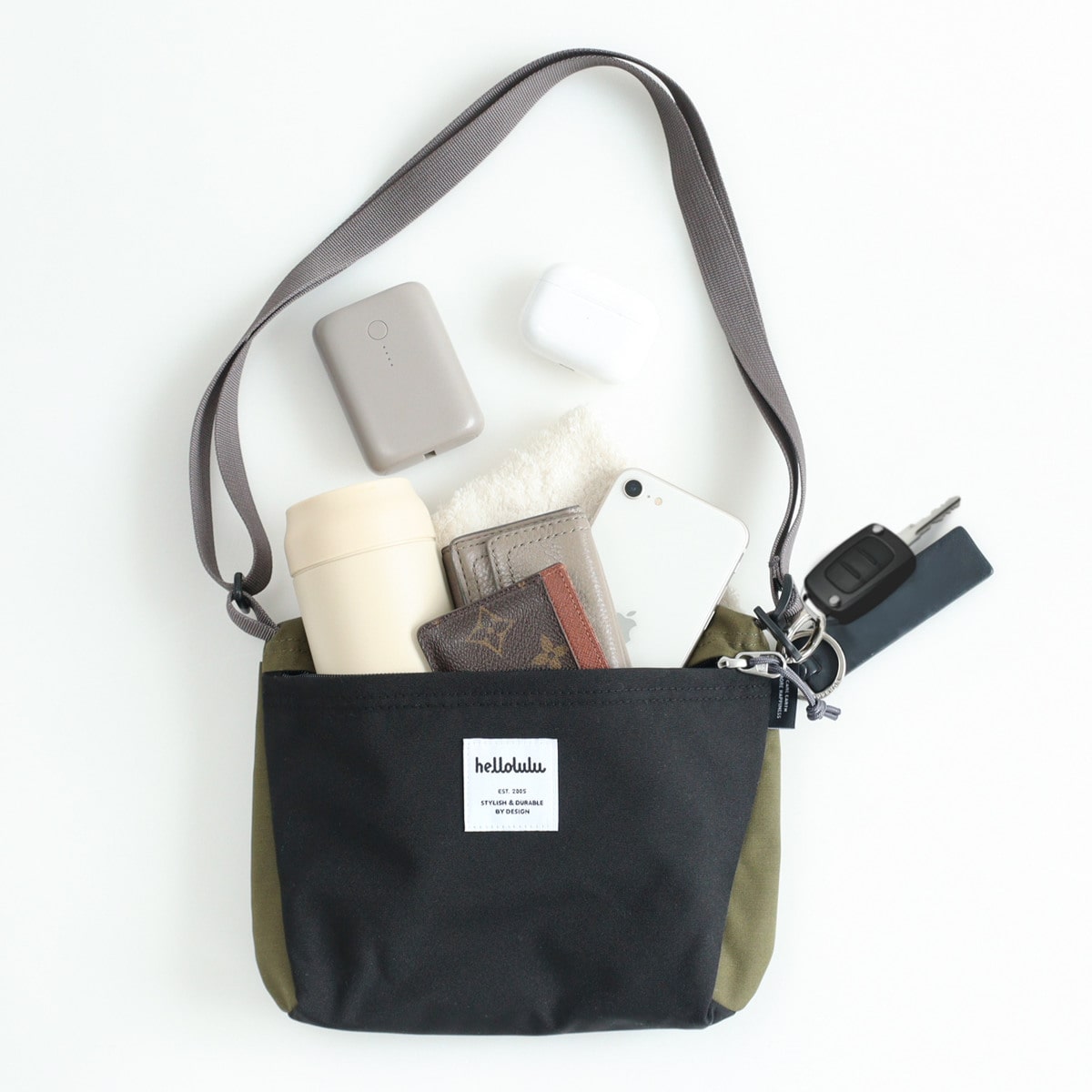 いつもの荷物に水筒・エコバッグ・モバイルバッテリーも入り、コンパクトながらも見た目以上に収納力があります。ちょっとしたレジャーやお子様とのお出かけにも大活躍します。