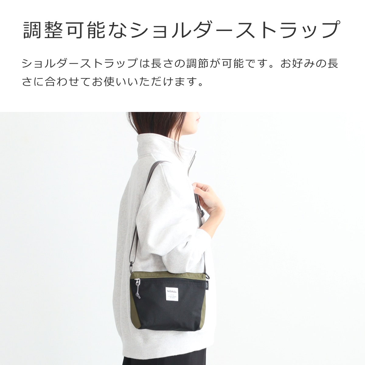 ショルダーストラップは長さの調節が可能です。お好みの長さに合わせてお使いいただけます。