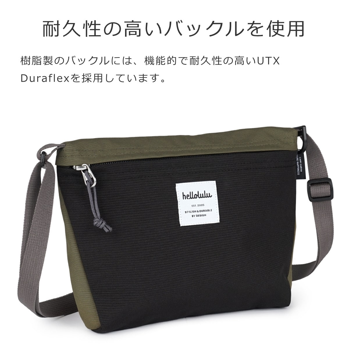 樹脂製のバックルには、機能的で耐久性の高いUTX Duraflexを採用しています。